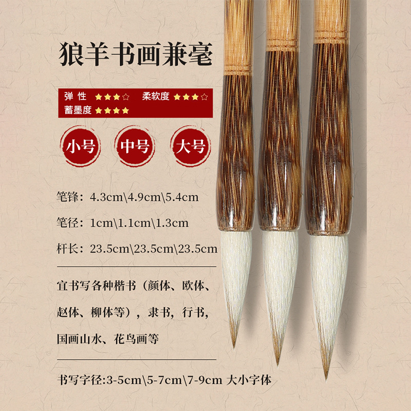 - 【精品套装】狼羊书画兼毫(三支装)