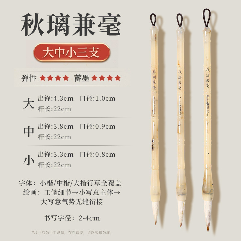【兼毫毛笔】秋璃大+中+小3支装 刚柔相济 适合初学