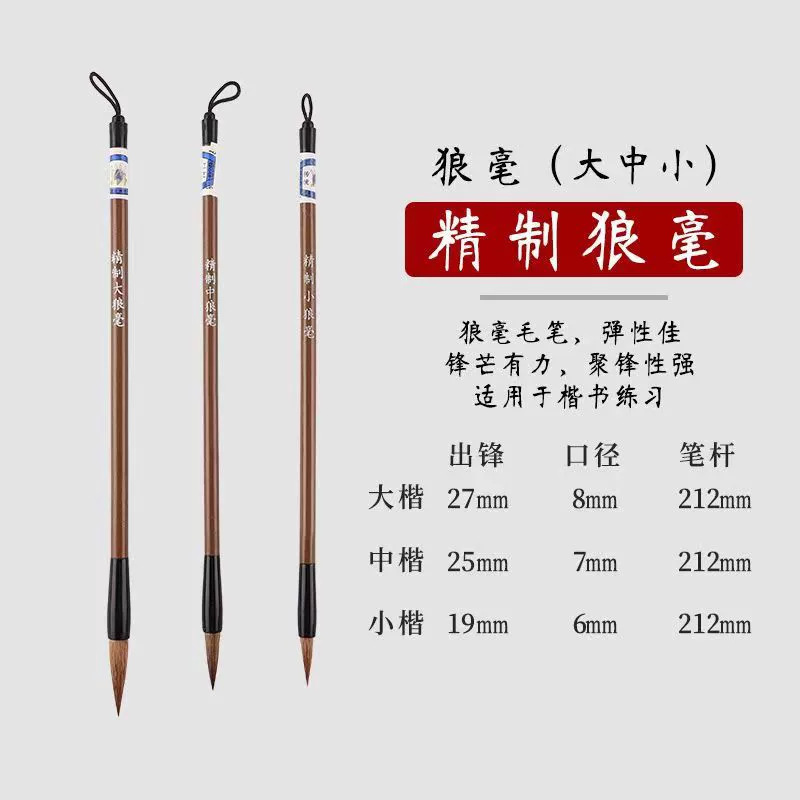 【狼毫毛笔】棕色大中小3支装 劲健锐利 笔锋立现
