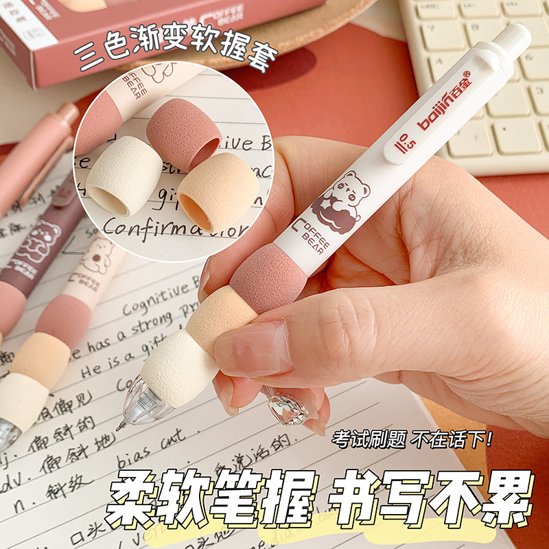 拼接海绵护套按动笔高颜值ins可爱学生速干中性笔0.5黑笔水笔ST