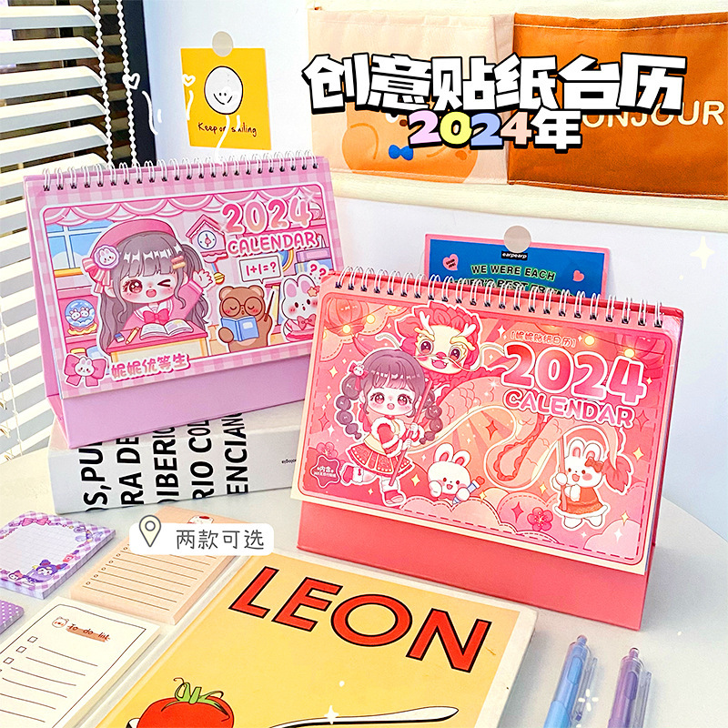 桌面记事小台历学生自律文具卡通贴纸台历龙年打卡日历