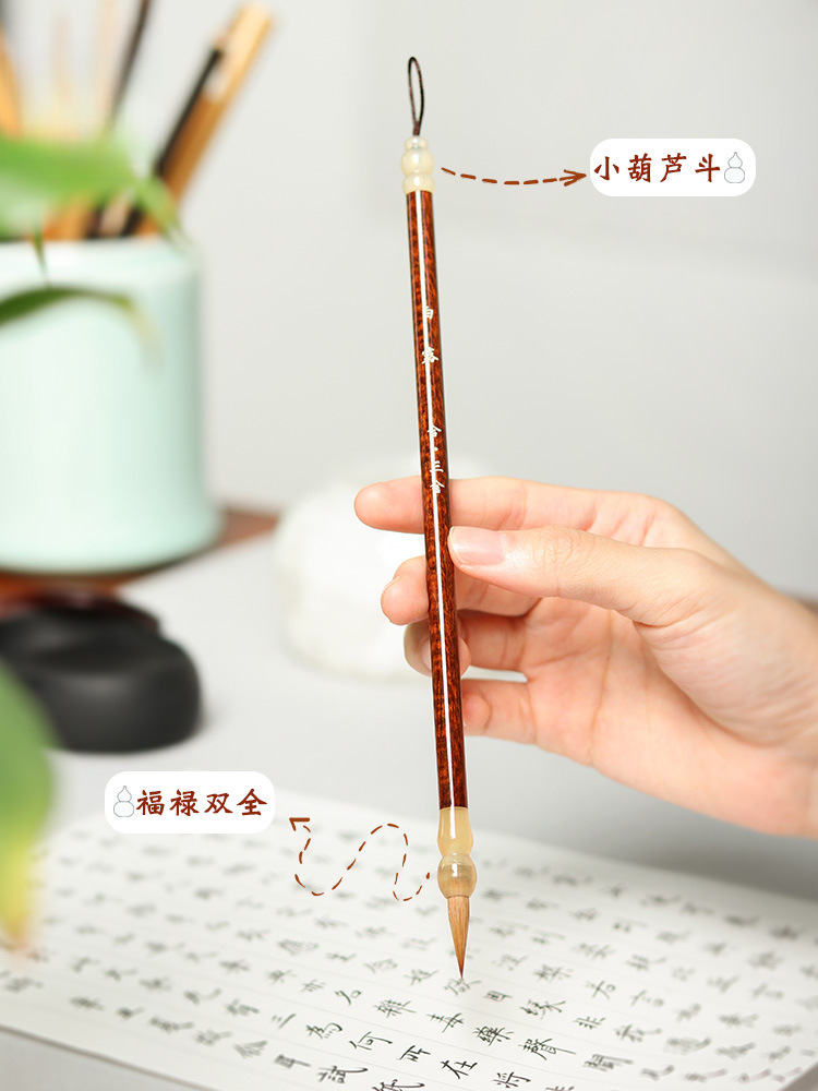 白露小楷毛笔小楷纯狼毫羊角笔斗虎斑木中楷临摹专业级毛笔