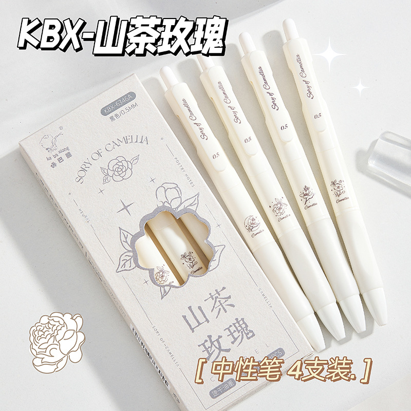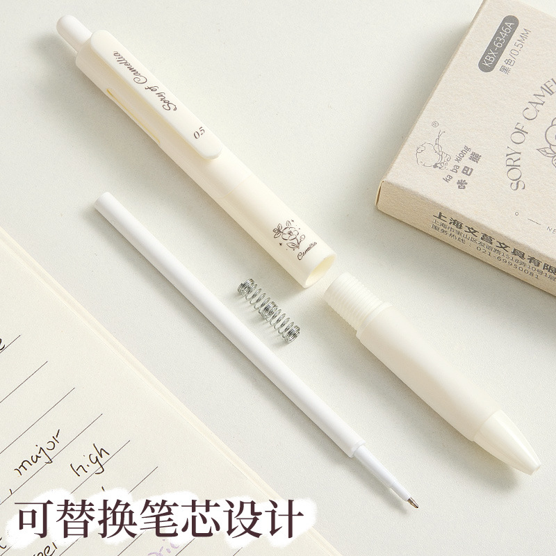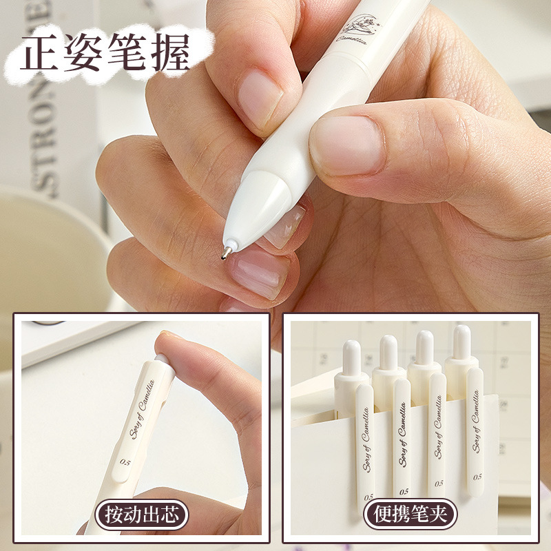 山茶花之恋按动中性笔ins简约风速干0.5黑笔学生小学生考试高颜值