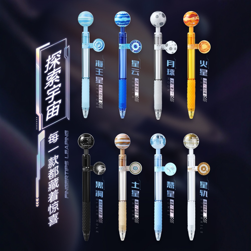 旋转星球笔黑科技悬浮按动中性笔ST头刷题笔速干顺滑0.5黑笔水笔