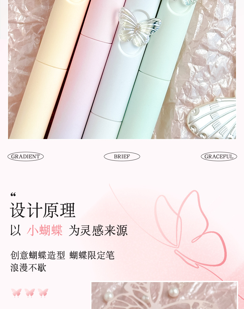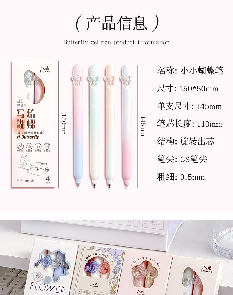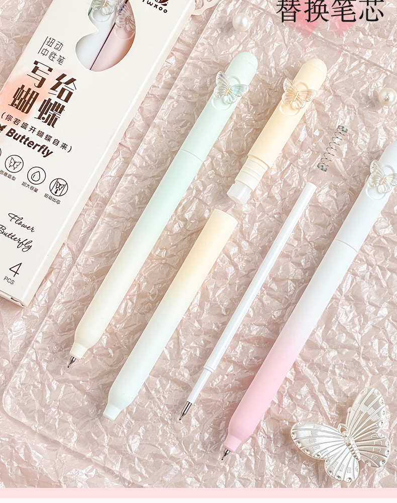 凡物像写给蝴蝶渐变旋转中性笔繁花入梦高颜值ins风女转动扭扭笔