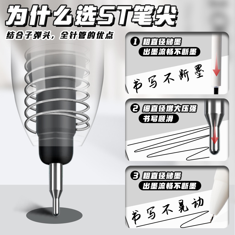 桶装刷题笔日系高颜值按动中性笔黑笔笔尖学生用初中按斤囤大容量