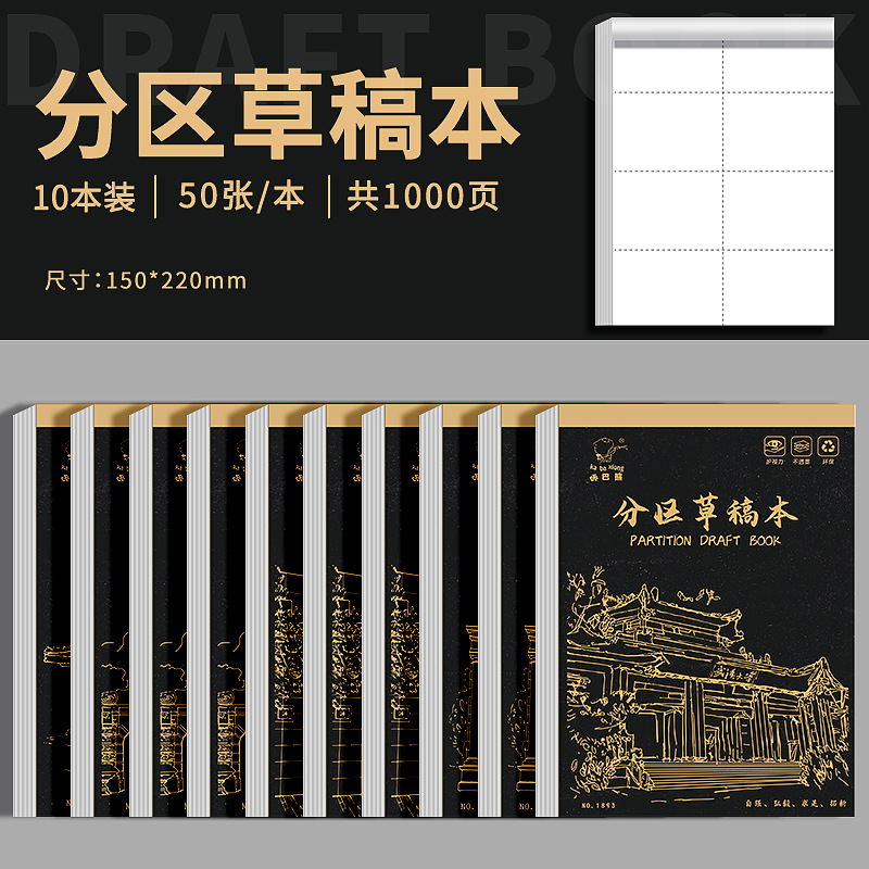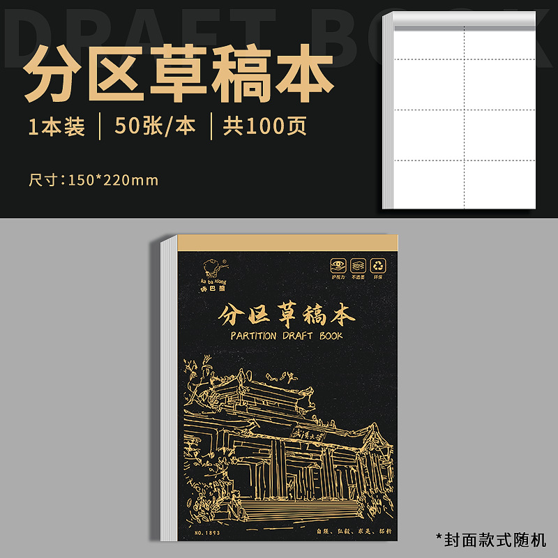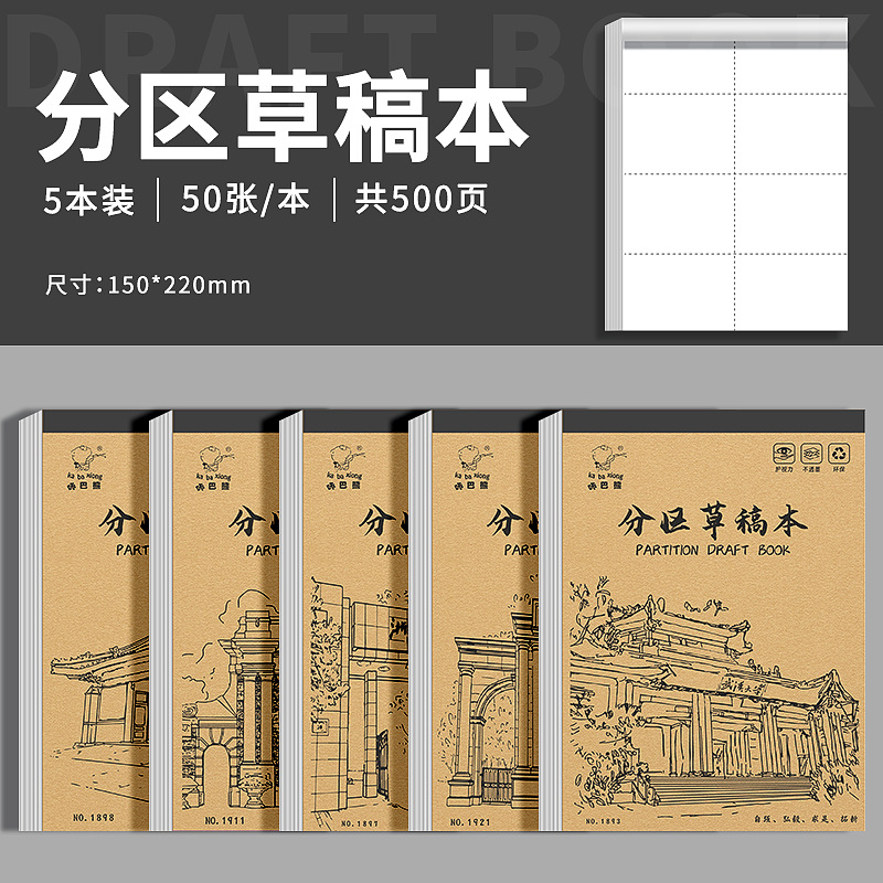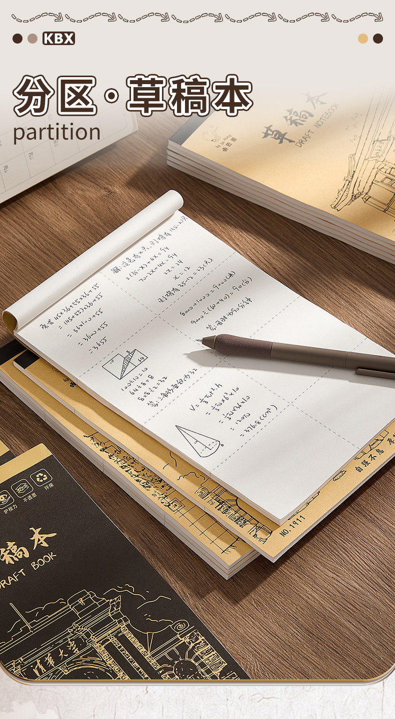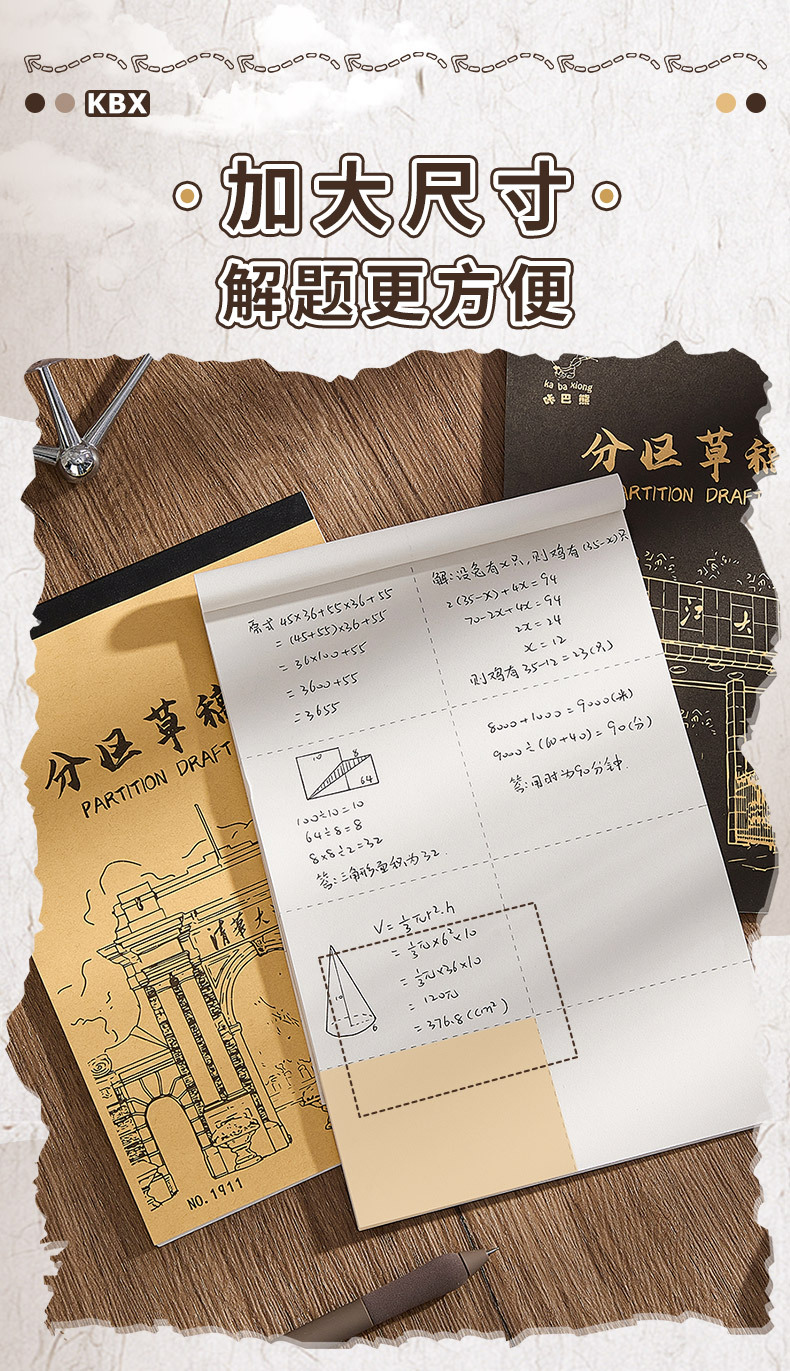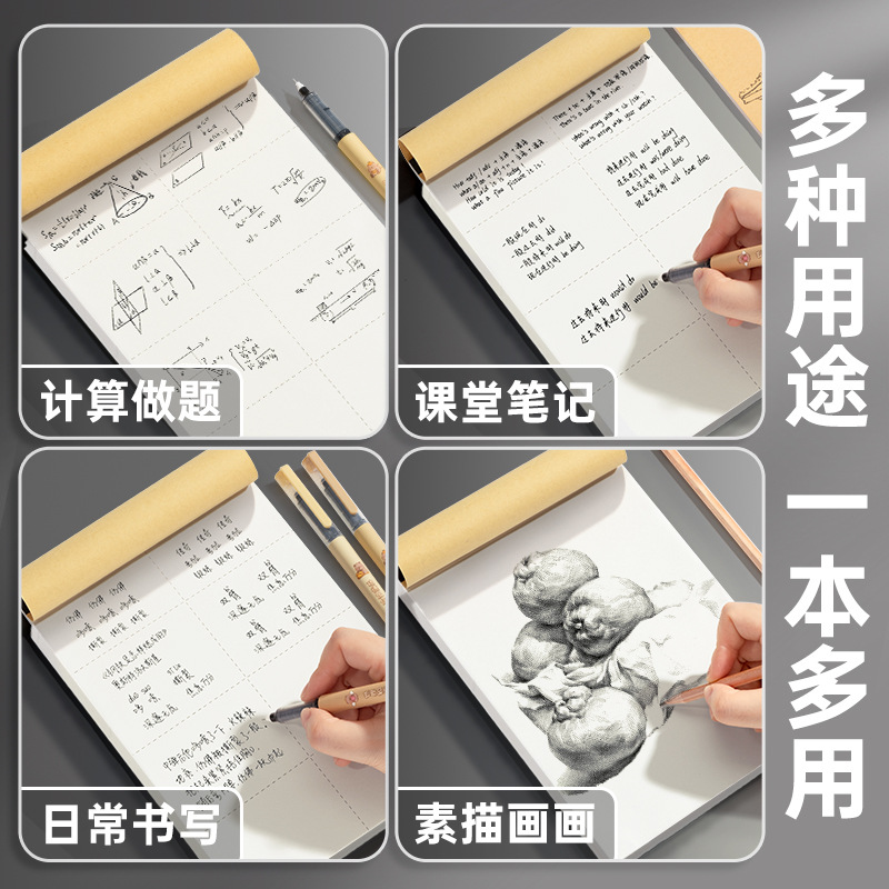 牛皮A5草稿本学生可撕草稿纸考研演算纸数学演草空白分区错题本子
