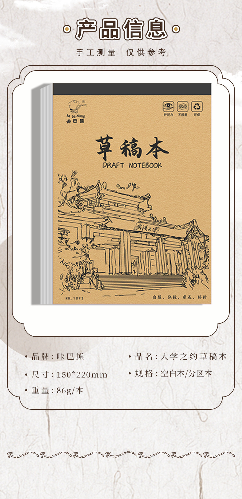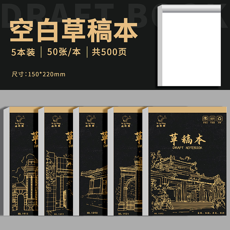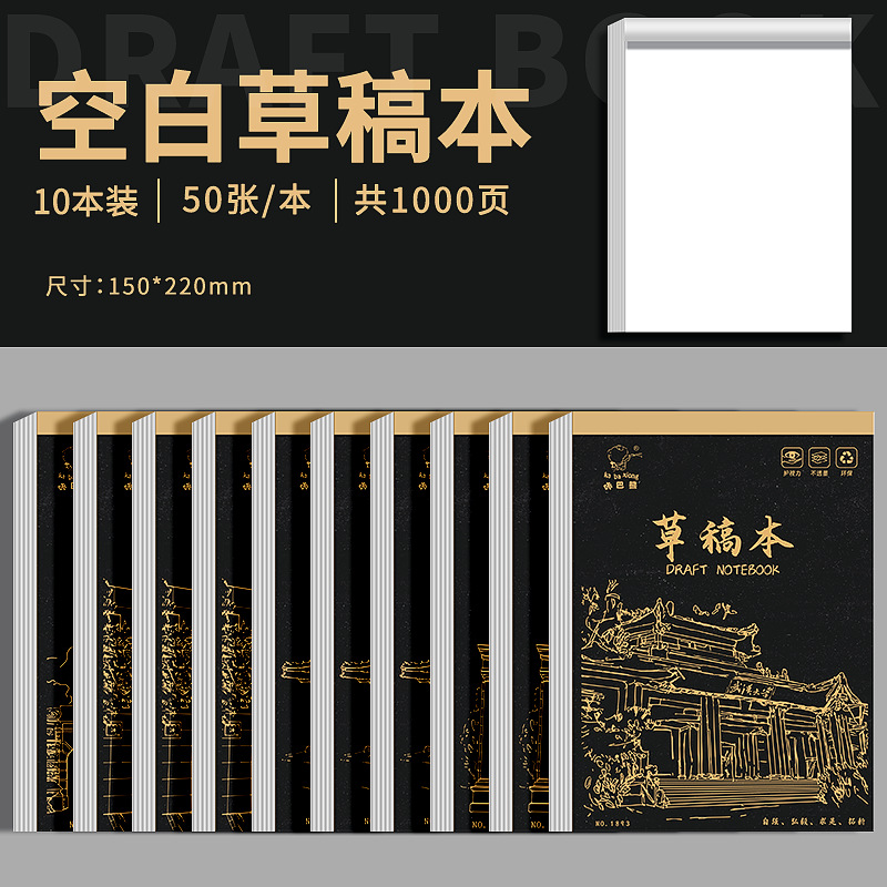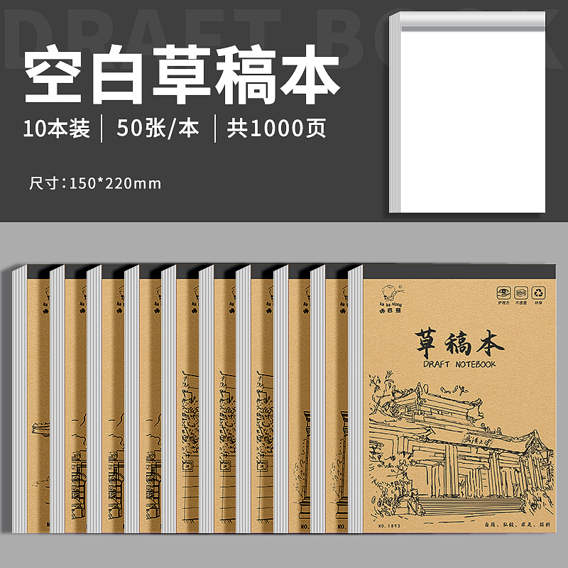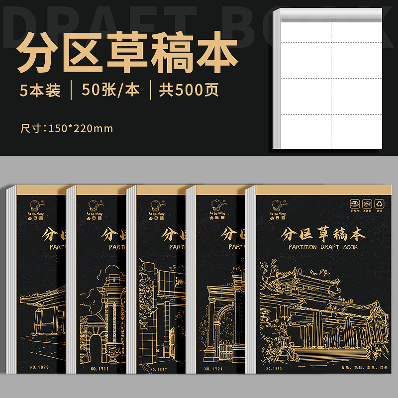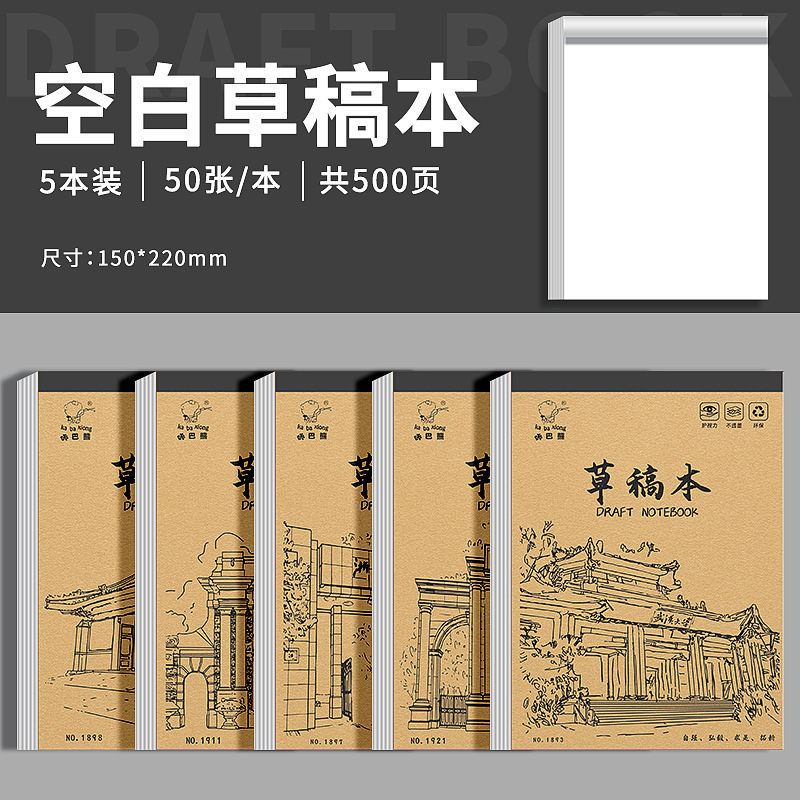 牛皮A5草稿本学生可撕草稿纸考研演算纸数学演草空白分区错题本子