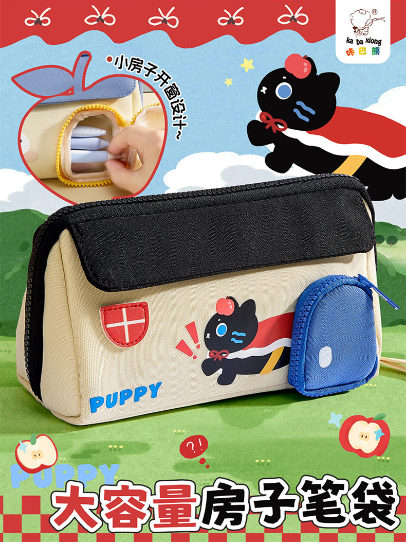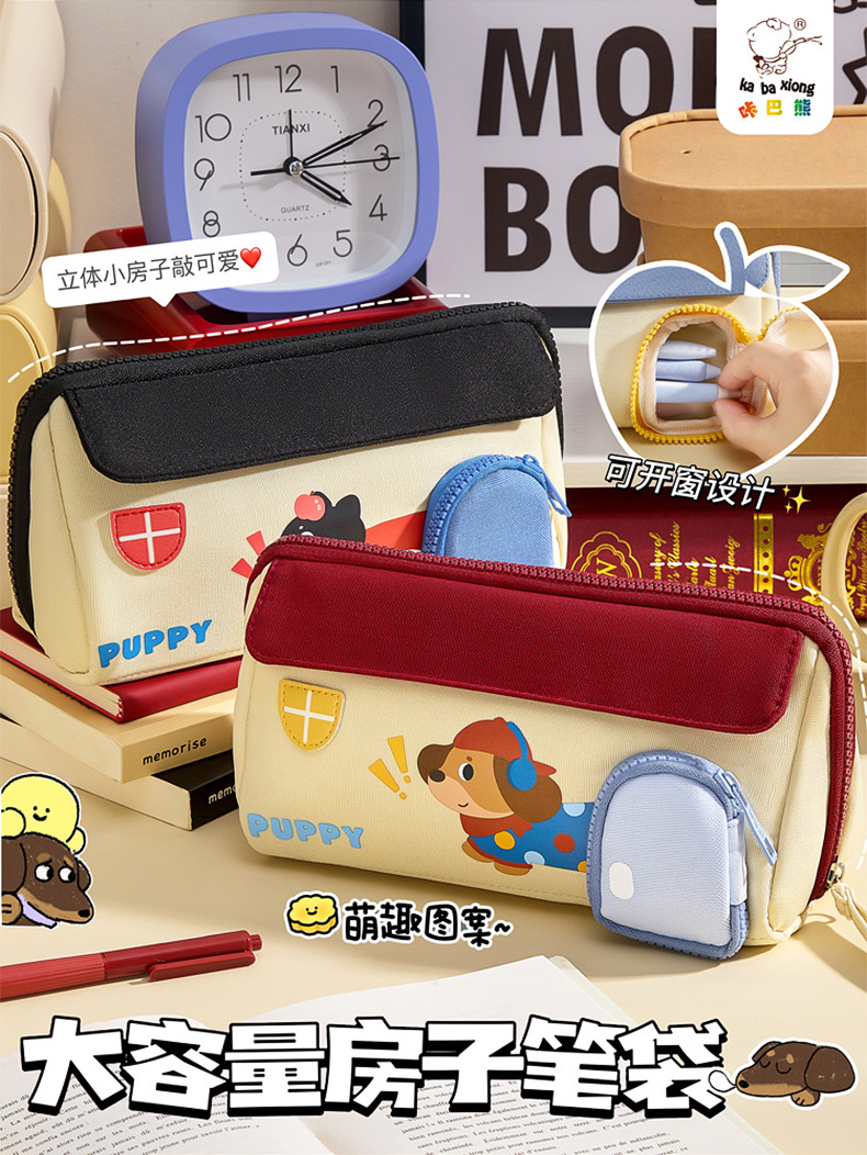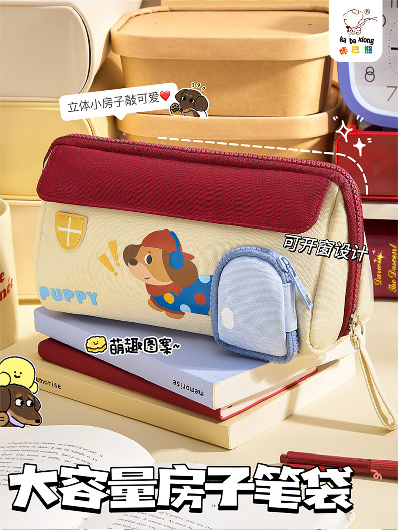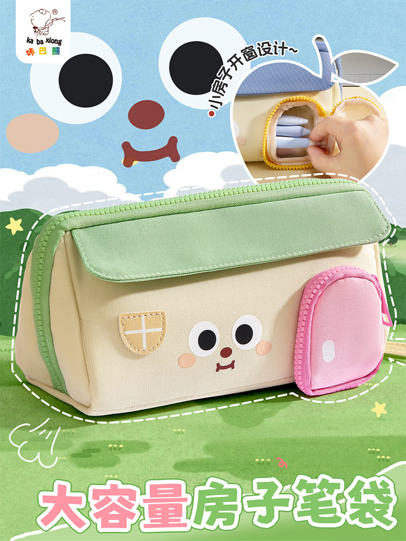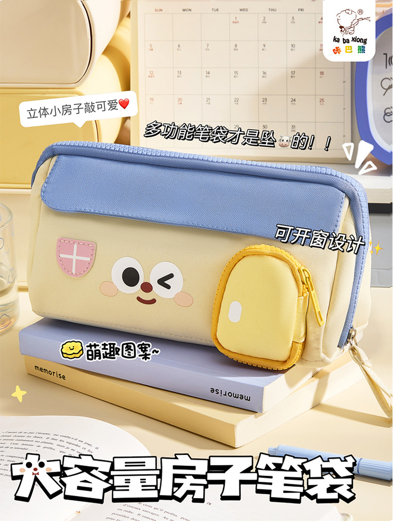 咔巴熊创意房子笔袋大容量可爱手提防水文具盒小学生文具收纳笔盒