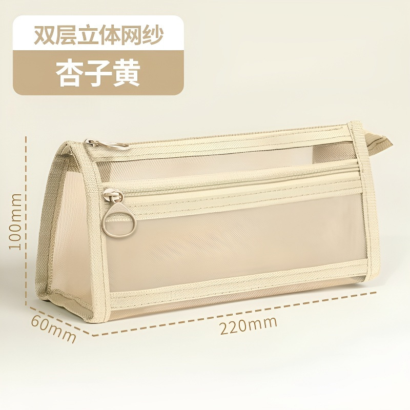 笔袋透明网纱学生考试专用文具袋儿童铅笔袋双层立体大容量文具盒