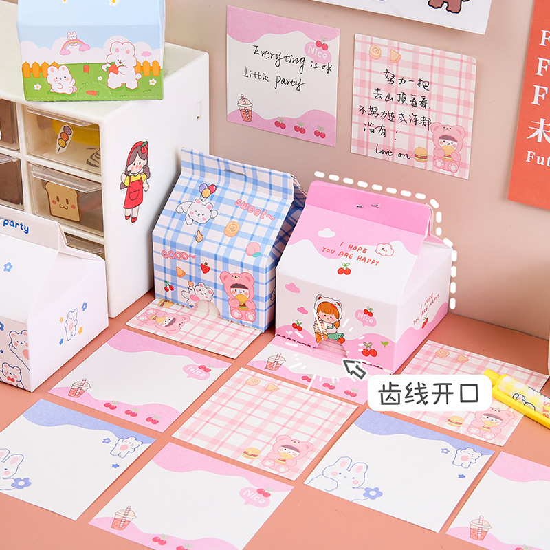 新款小清新牛奶盒便签 韩版ins风可爱创意卡通学生少女无粘便条纸