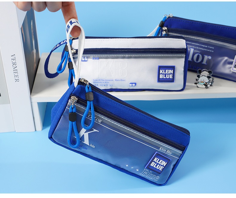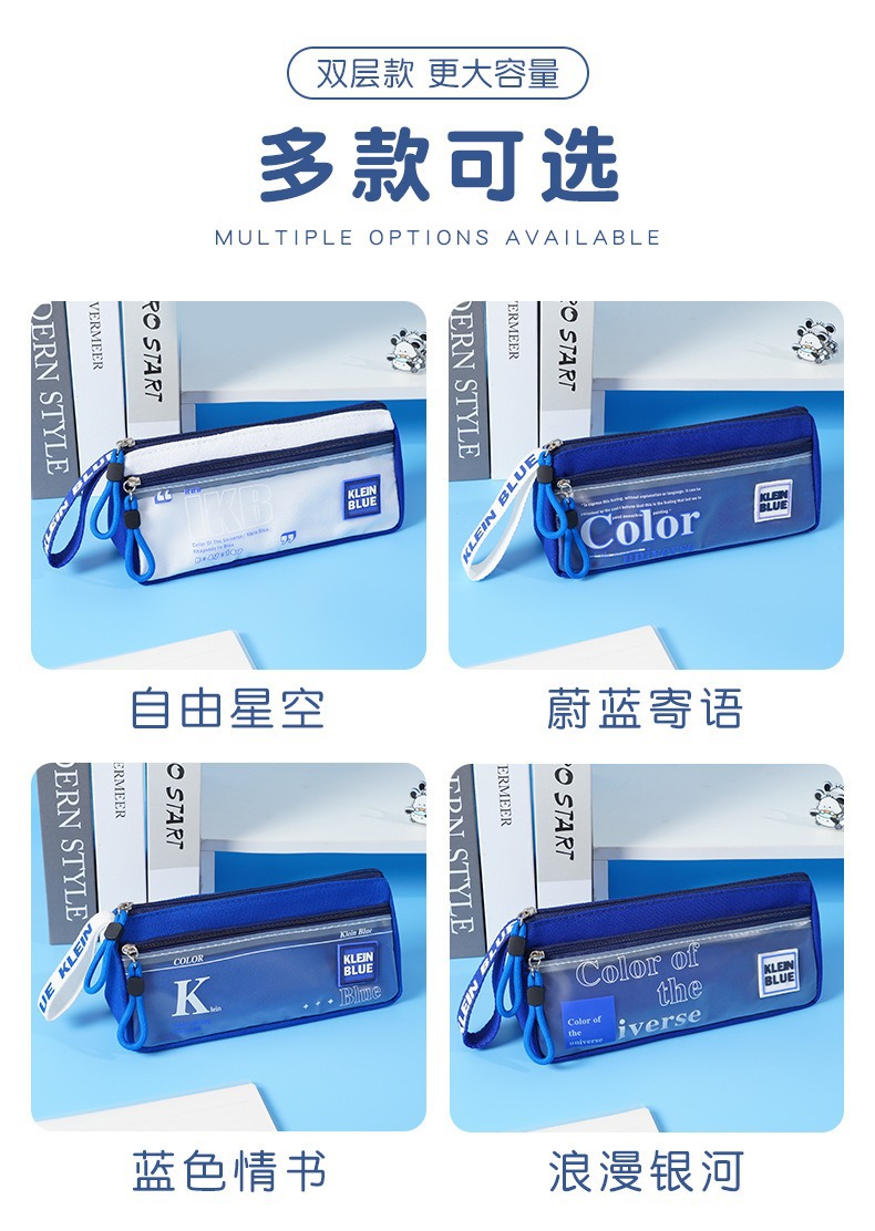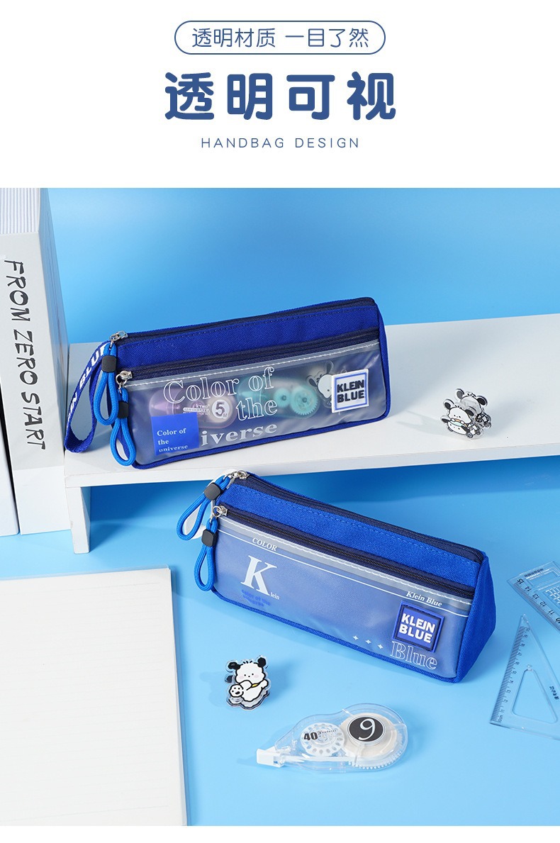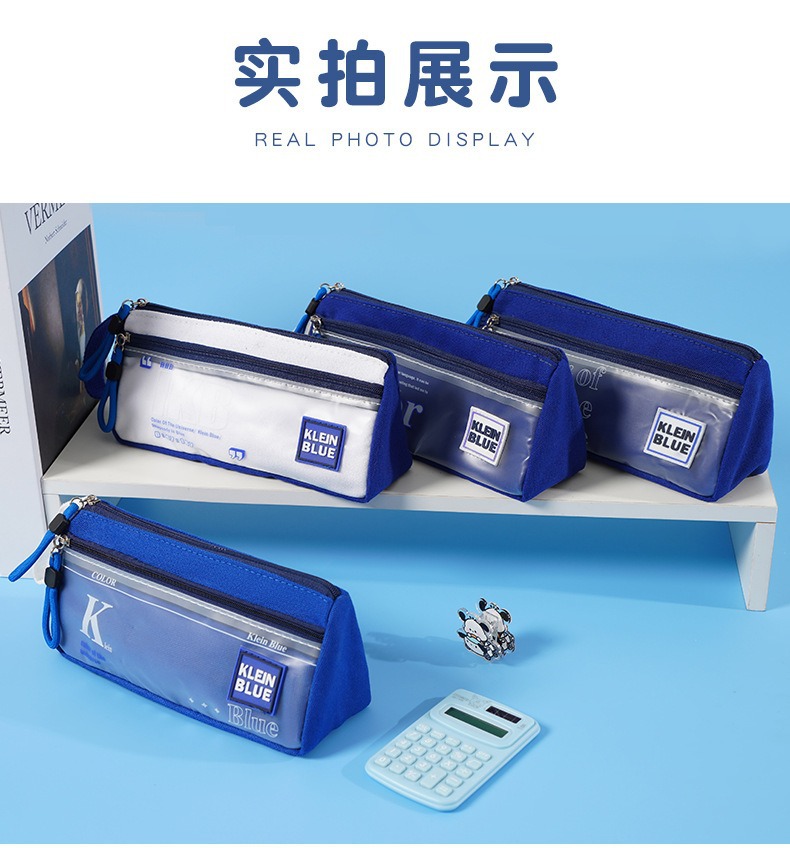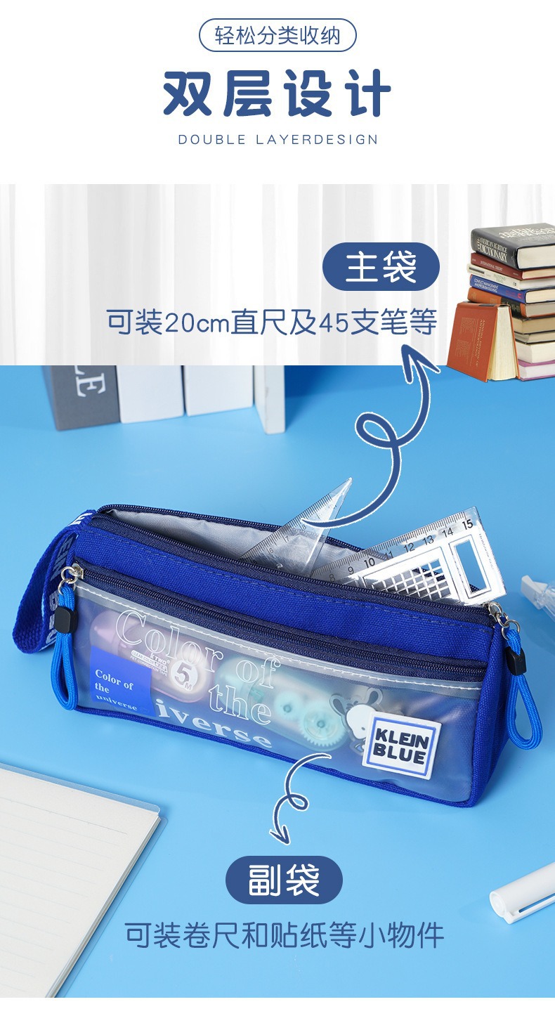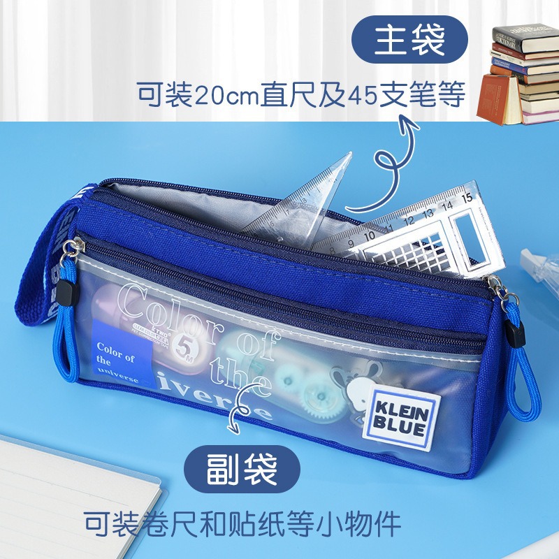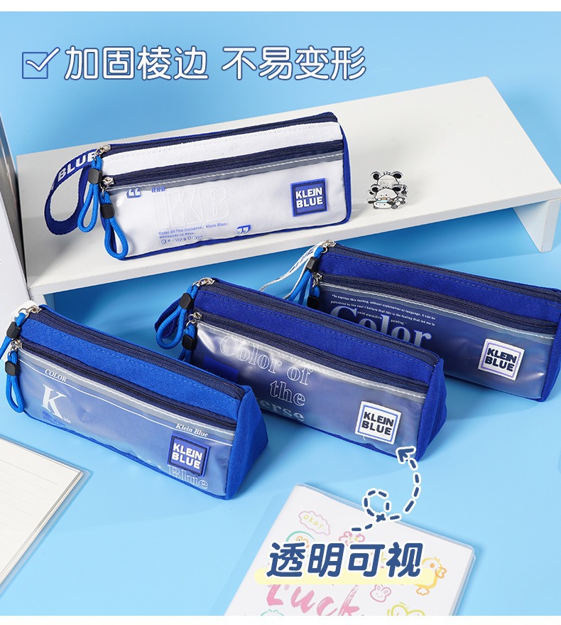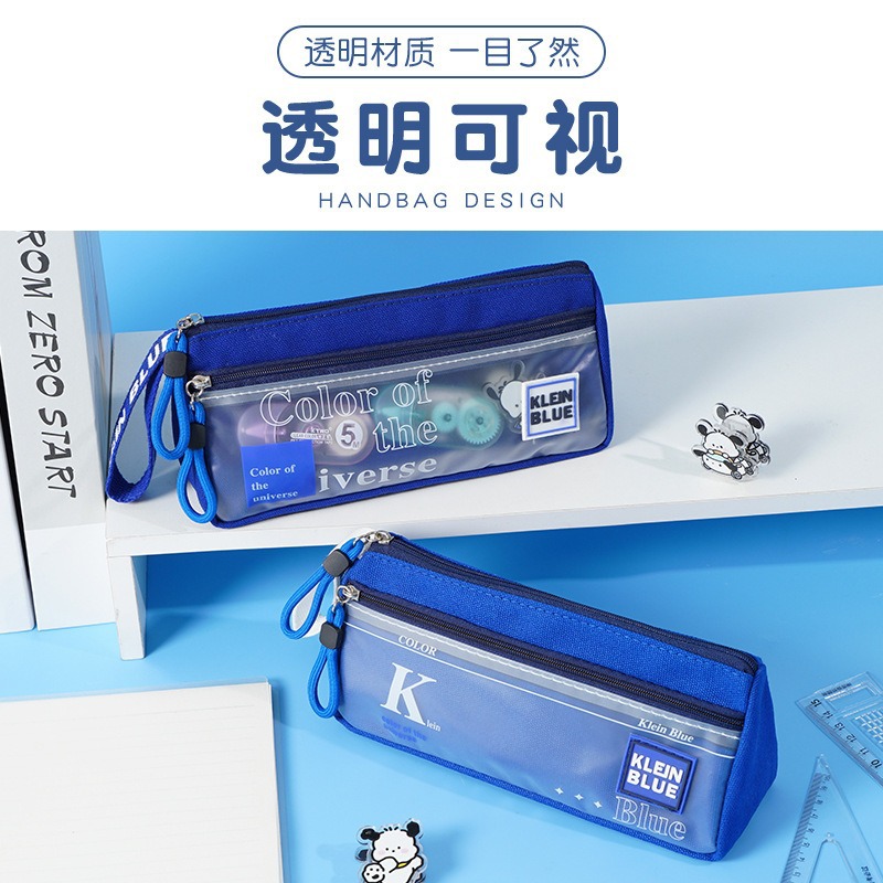 三角形透明网纱笔袋学生考试专用文具袋双层立体大容量文具盒考试