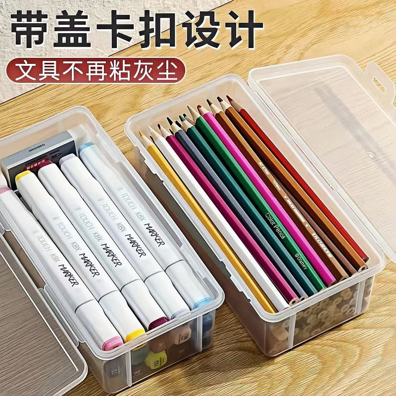 铅笔收纳盒大容量透明文具盒收纳笔筒装彩铅儿童蜡笔绘桌面收纳盒