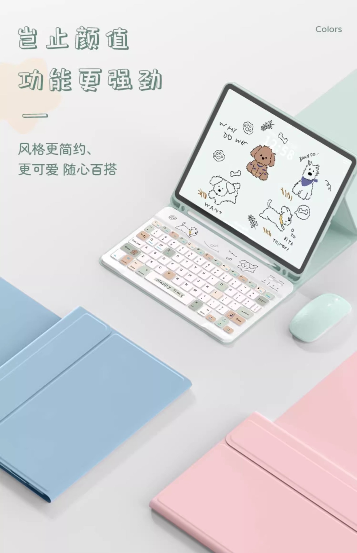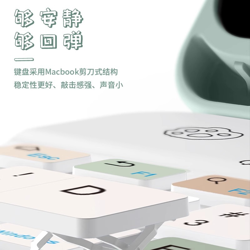 - 晨雾绿【毛边狗A225方形键盘-带绿色鼠标】收藏送钢化膜