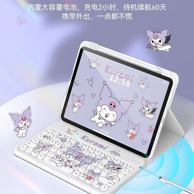 - 加油库洛米【同款圆形键盘带白色鼠标】720°透明旋转★磁吸拆分