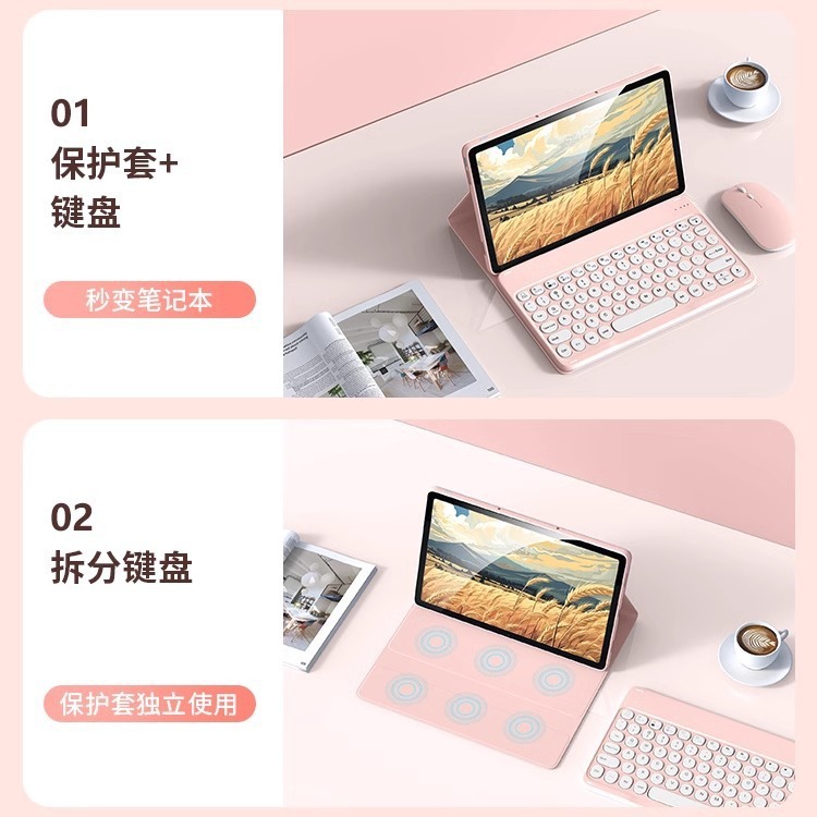 - 元气粉+粉圆键盘+粉色鼠标+送钢化膜