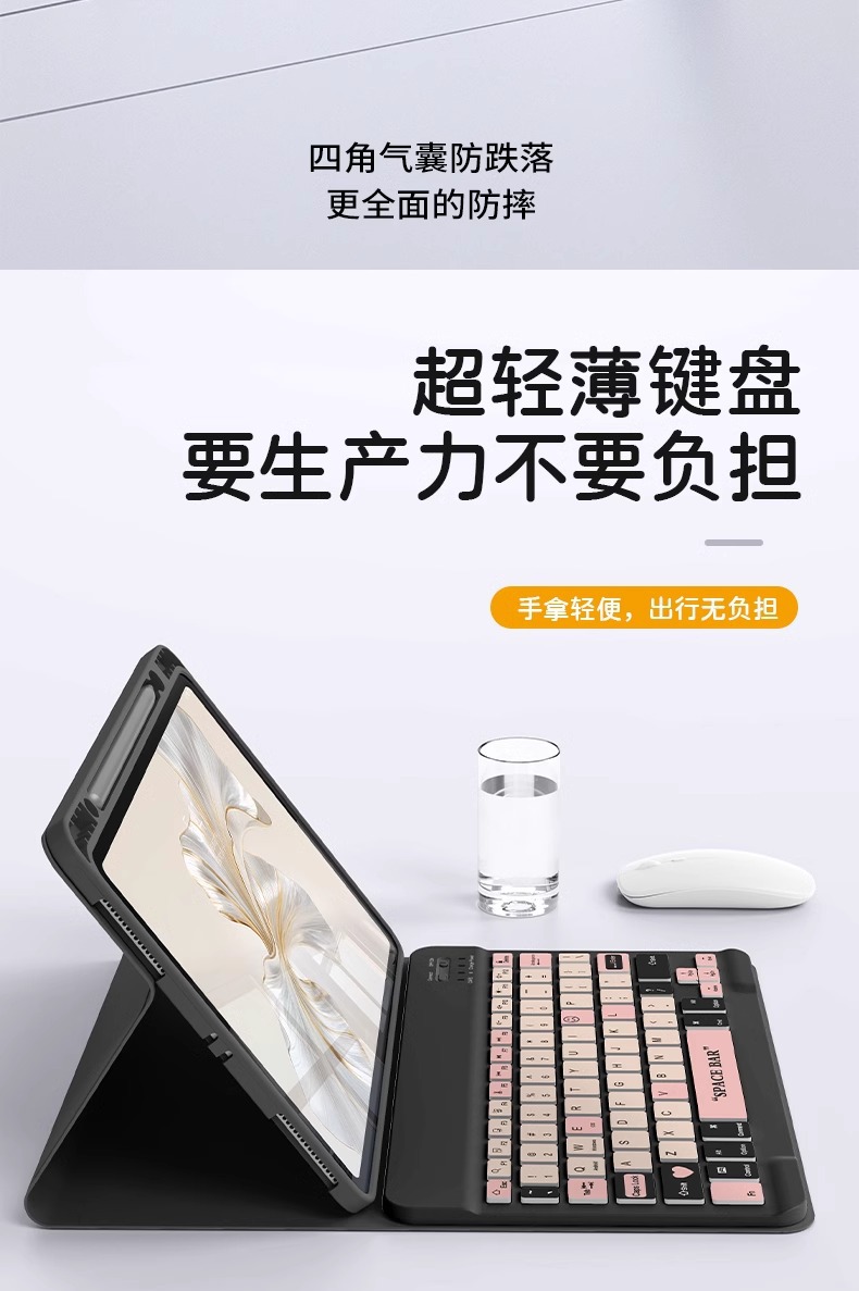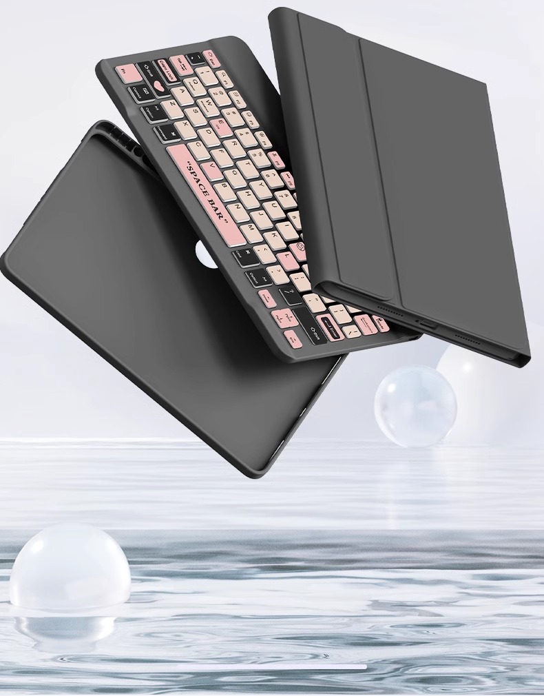 雅丹黑--粉色爱心方形键盘+钢化膜