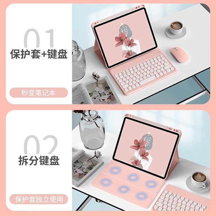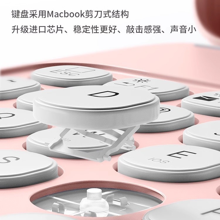 - 【樱花粉】圆形粉键盘★粉色鼠标+收藏赠钢化膜