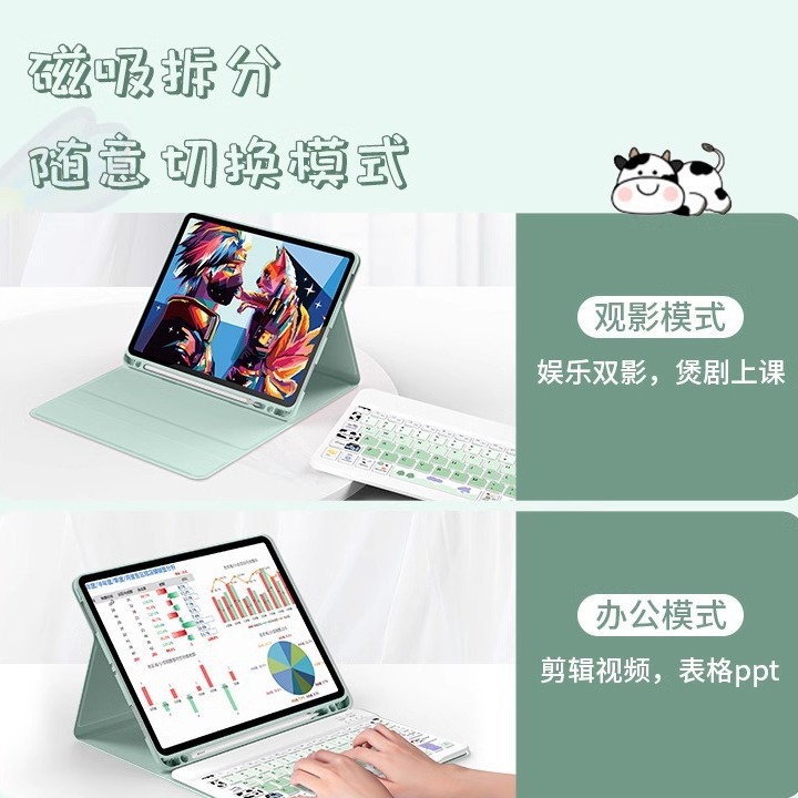 - 湖光青【撞色奶牛方形键盘+绿色鼠标】