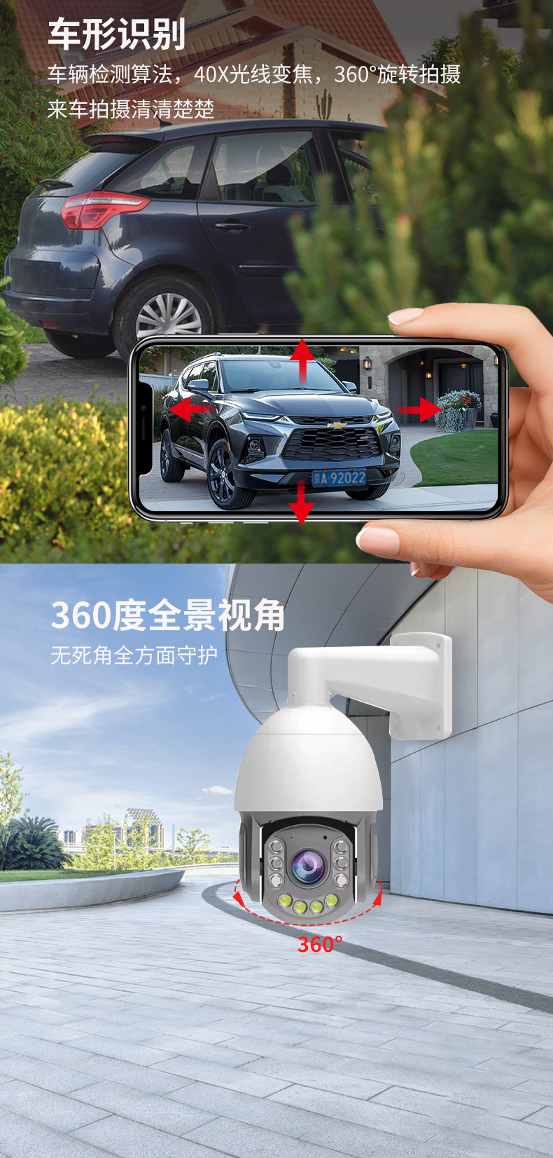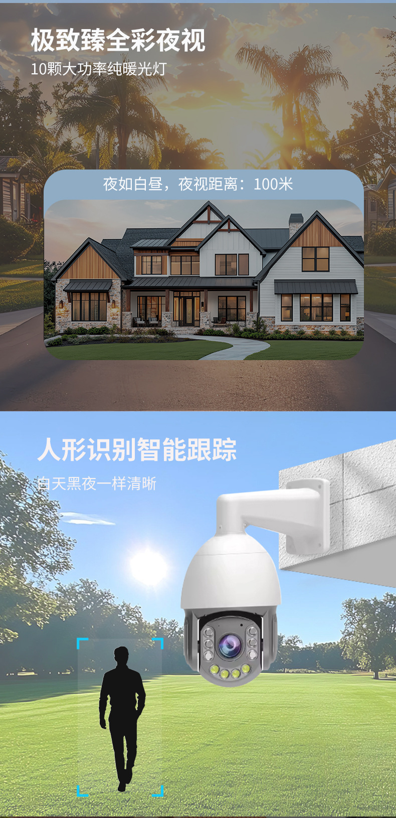 8寸臻全彩变倍球机手机远程监控器360度无死角海康协议臻彩夜视