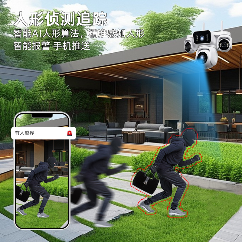 真四目全彩双光全视角手机监控摄像头睿博士APP4G夜视