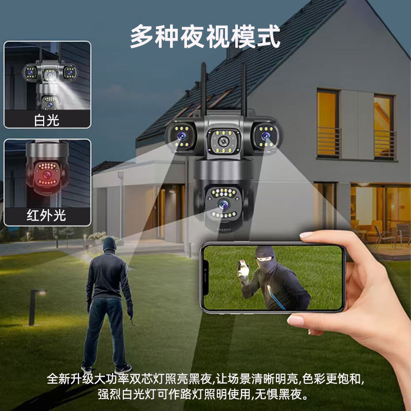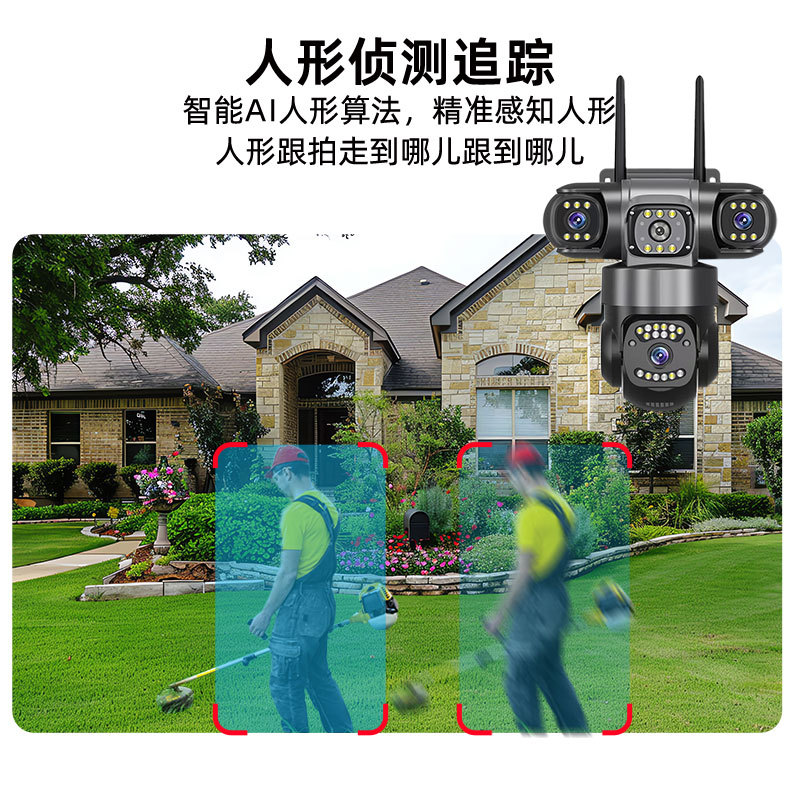 家用监控摄像头四镜头四画面800W像素WiFi家用监控摄像头HiEasy