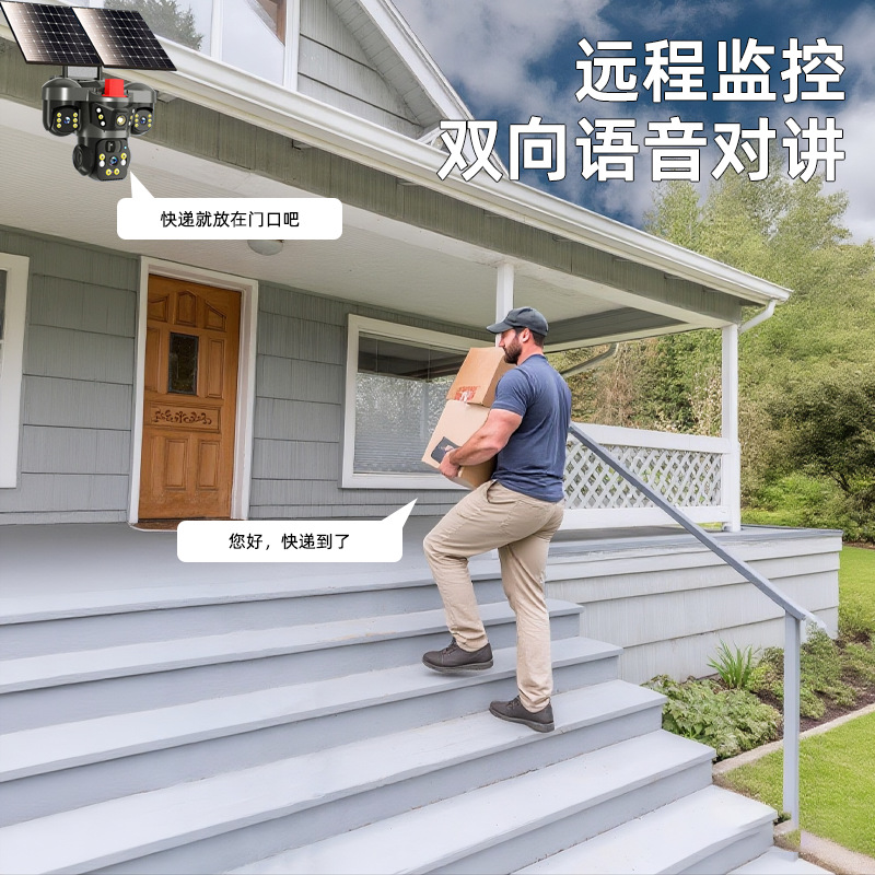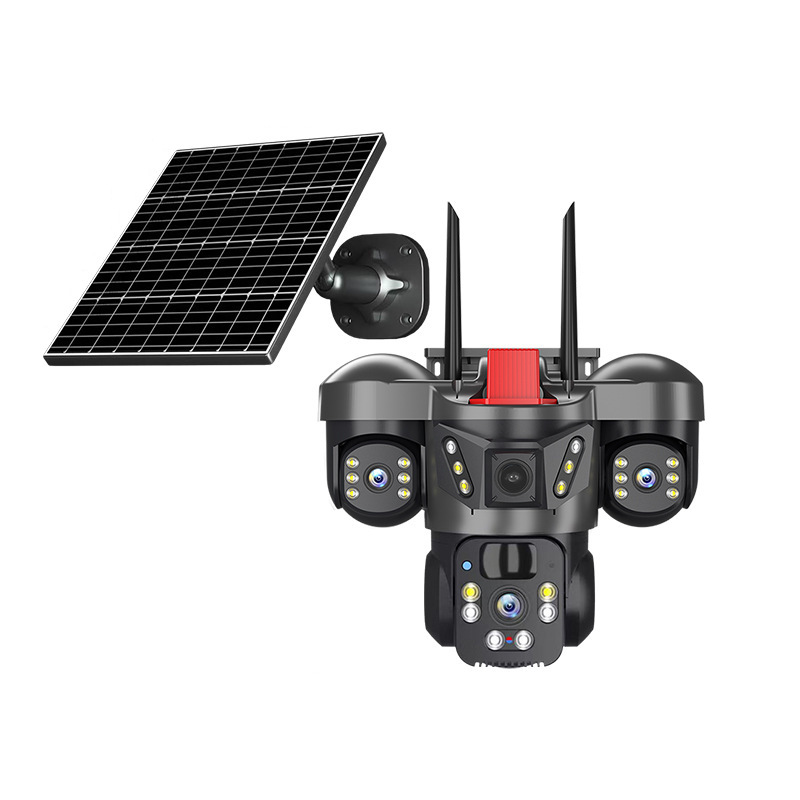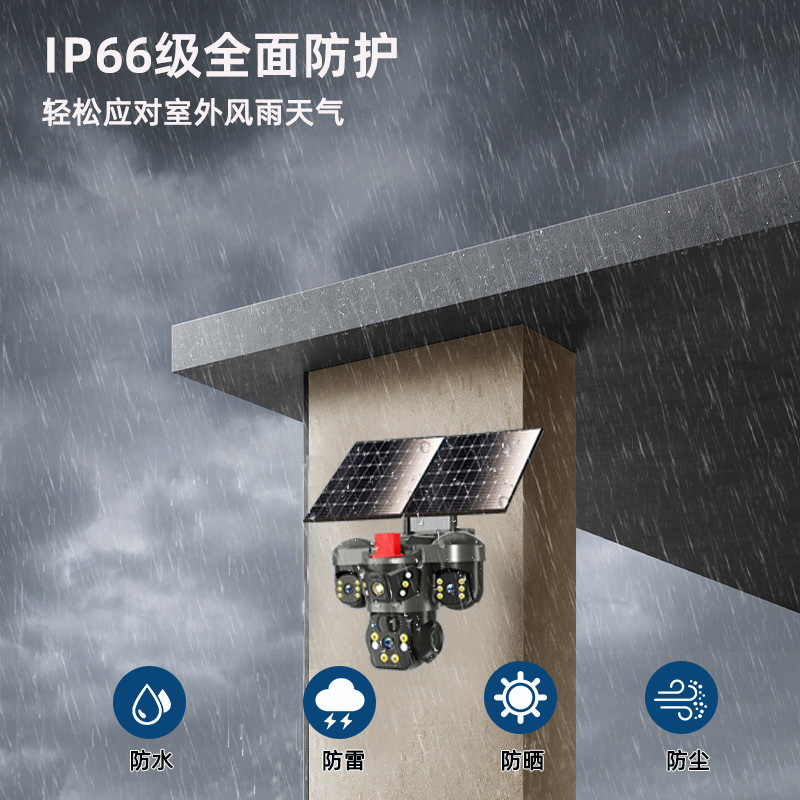 4G免流量四镜头四画面太阳能远程监控器室外360度摄像头智能报警