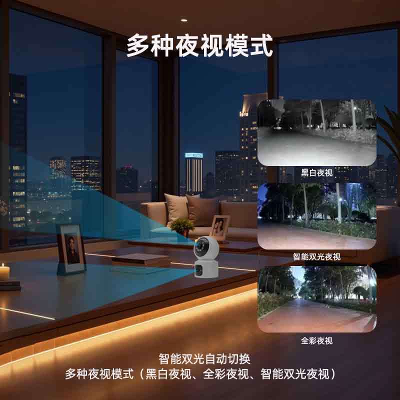 双镜头无线监控摄像头枪球摄像机联动旋转全景WiFi监控器