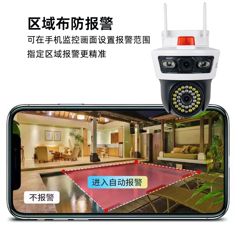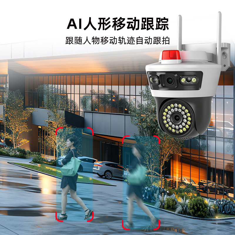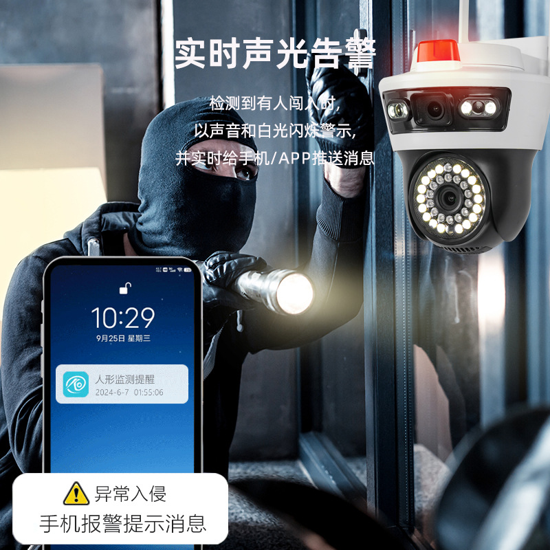 三画面摄像头360无死角手机远程全彩夜视室外高清防水智能监控器