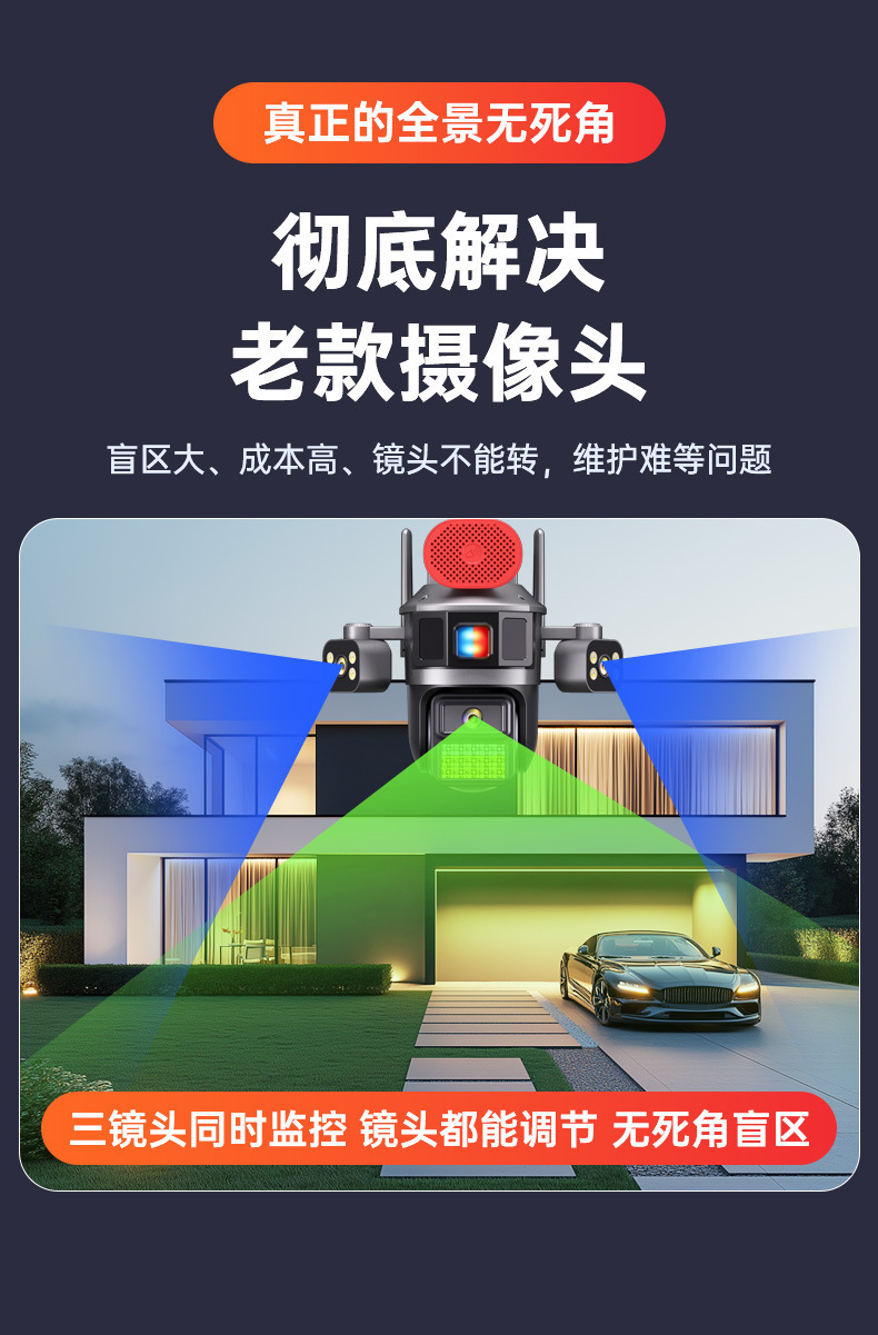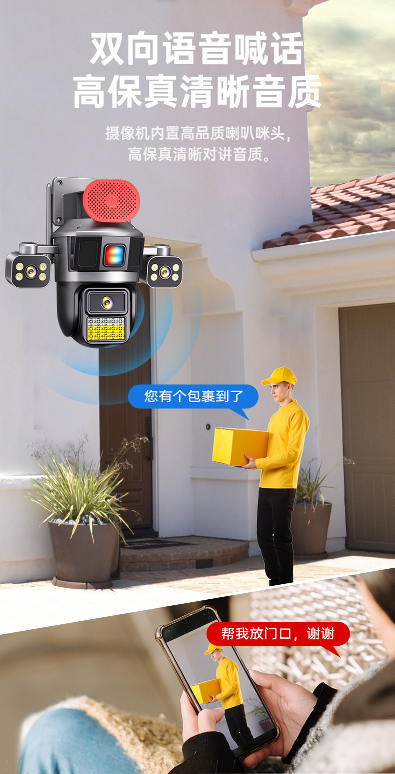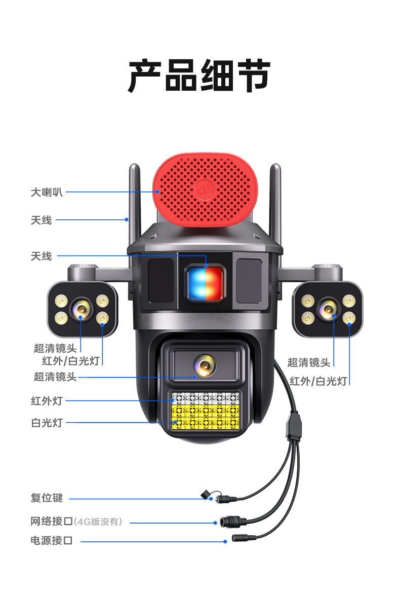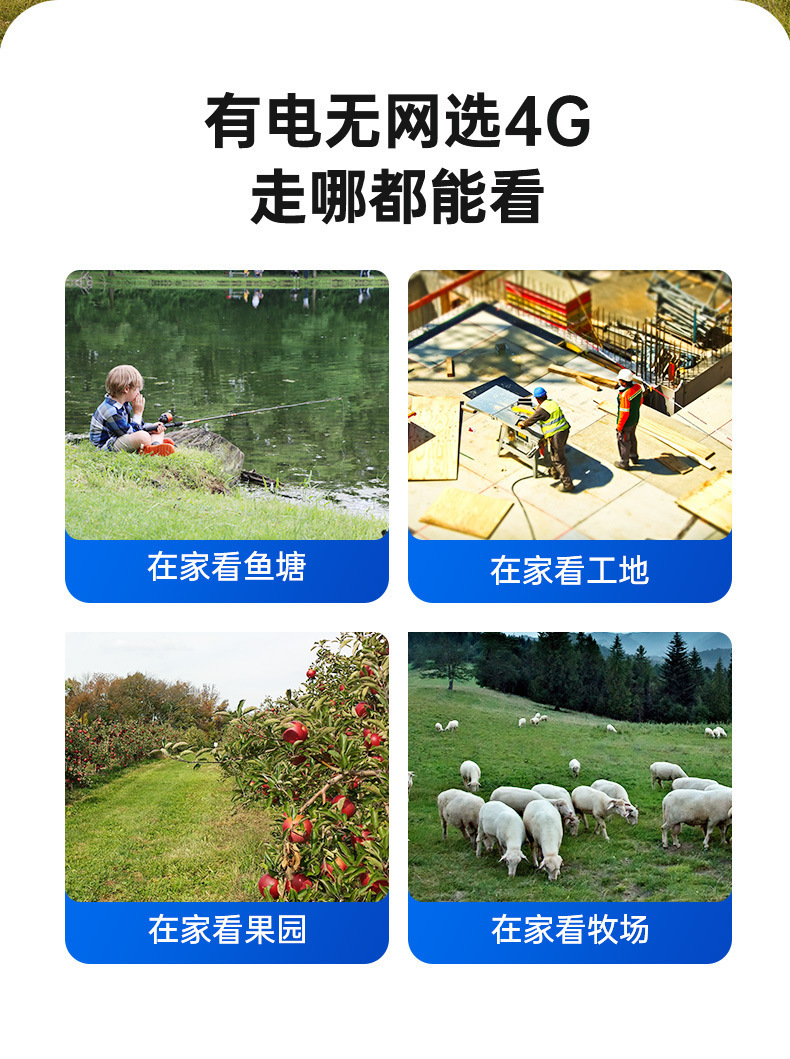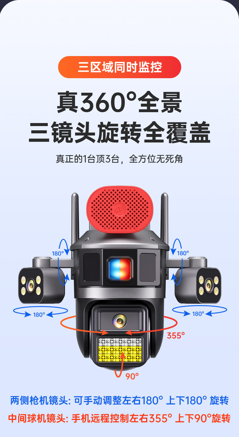 4G流量太阳能摄像机三镜头高清全彩夜双摄像头手机远程360度监控