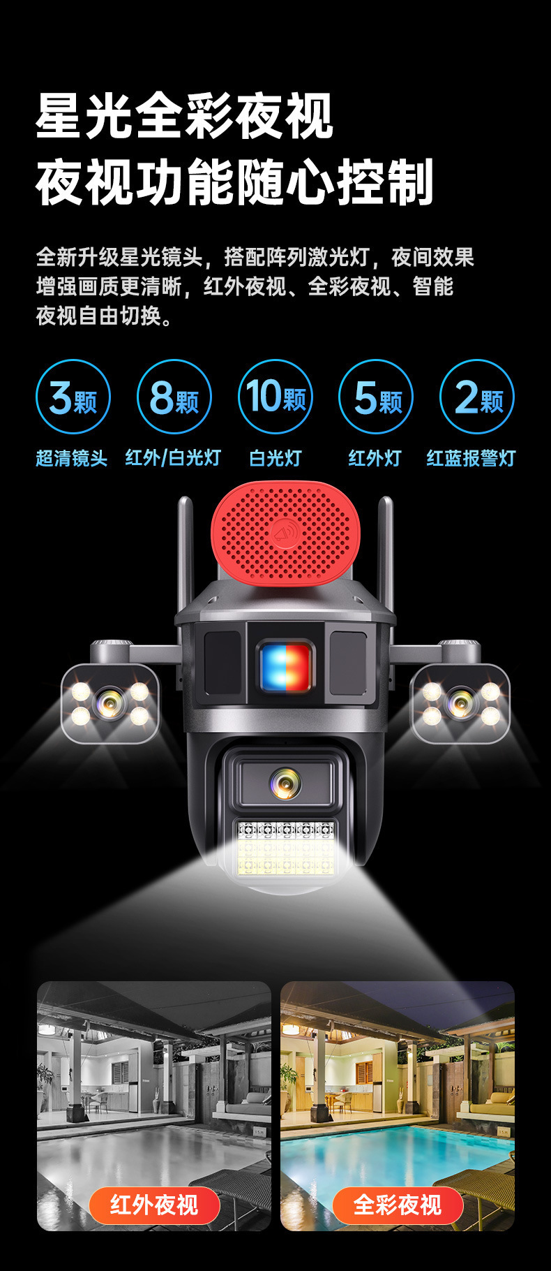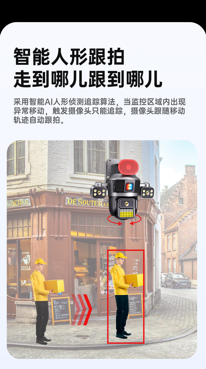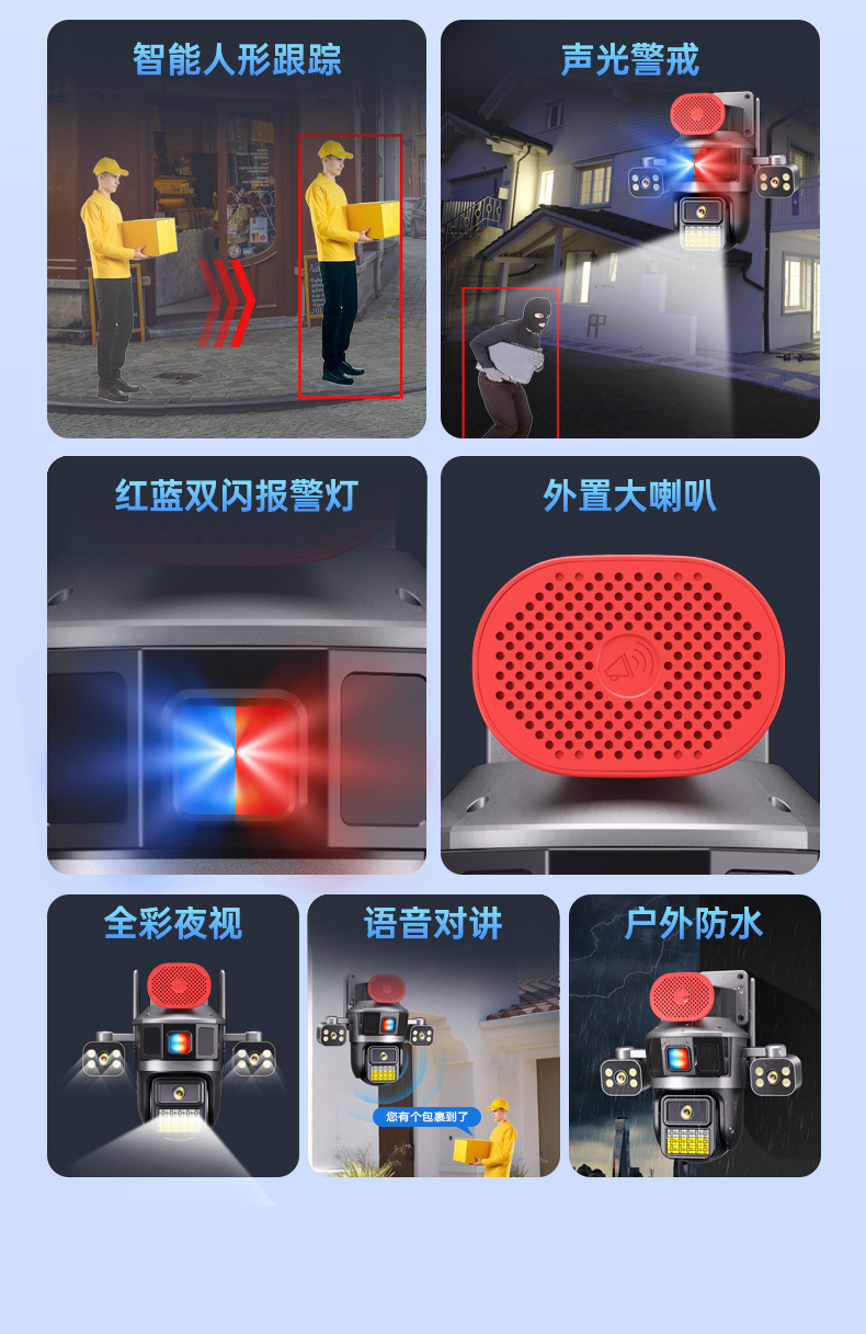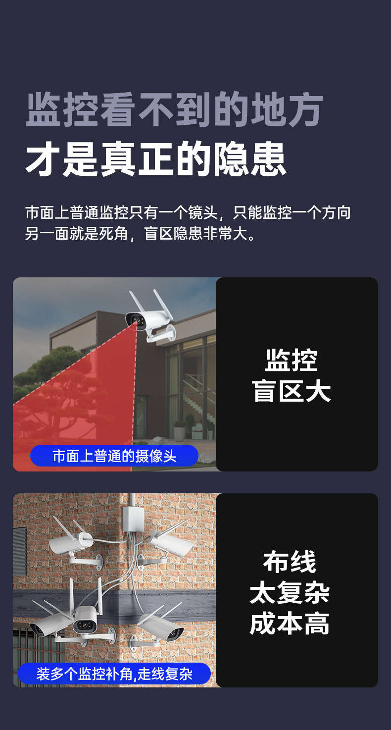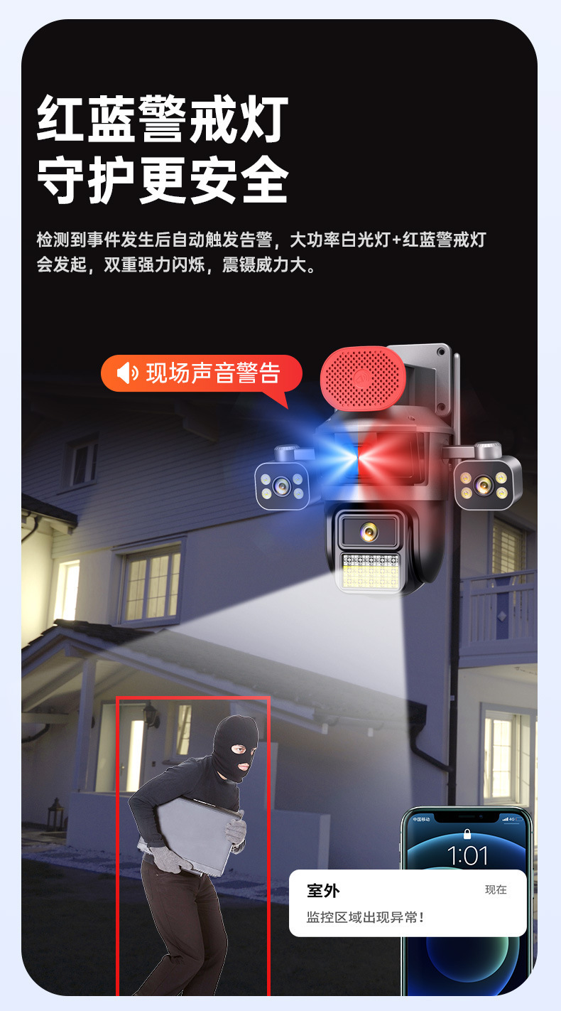 4G流量太阳能摄像机三镜头高清全彩夜双摄像头手机远程360度监控