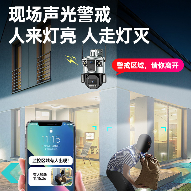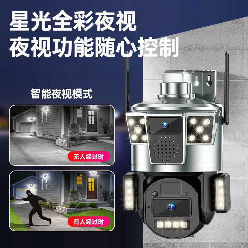 远程无线摄像头监控家用超高清360度室外三画面全彩夜视监控器
