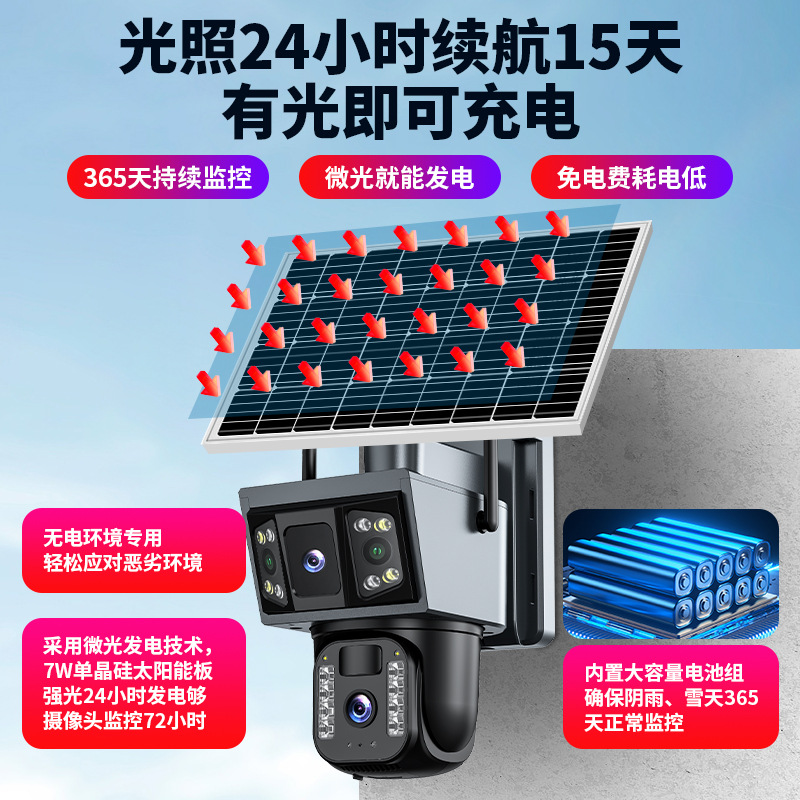 - 送5年免费流量双板太阳能高清送15天循环录像卡