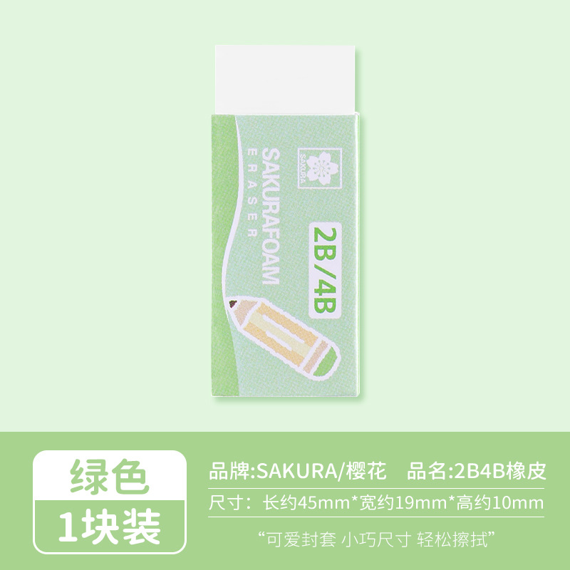 - 樱花XRFS-SC学生2B4B橡皮-绿色 1块(60块/盒)