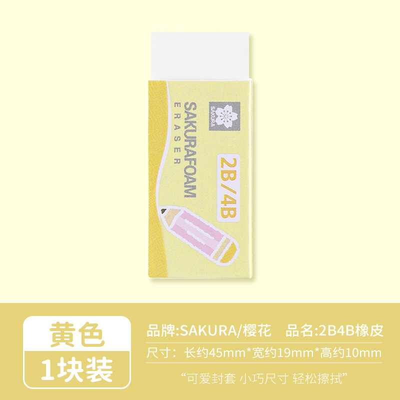 - 樱花XRFS-SC学生2B4B橡皮-黄色 1块(60块/盒)