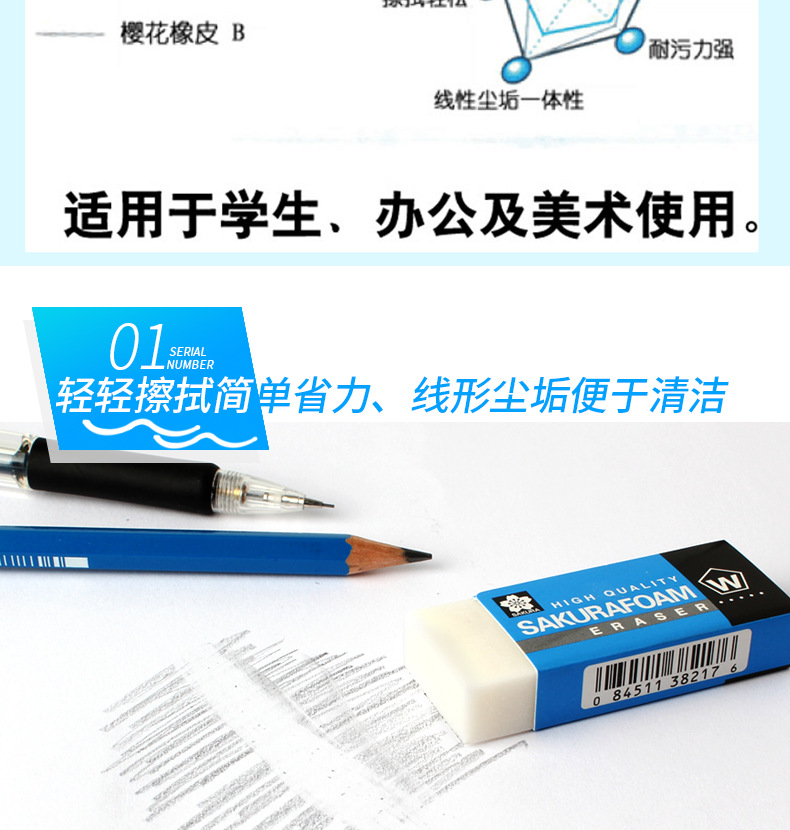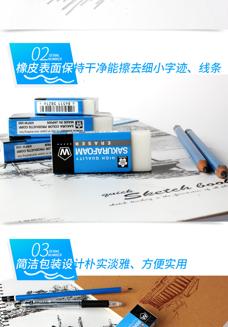 - 樱花XRFS-SC学生2B4B橡皮-蓝色 1块(60块/盒)