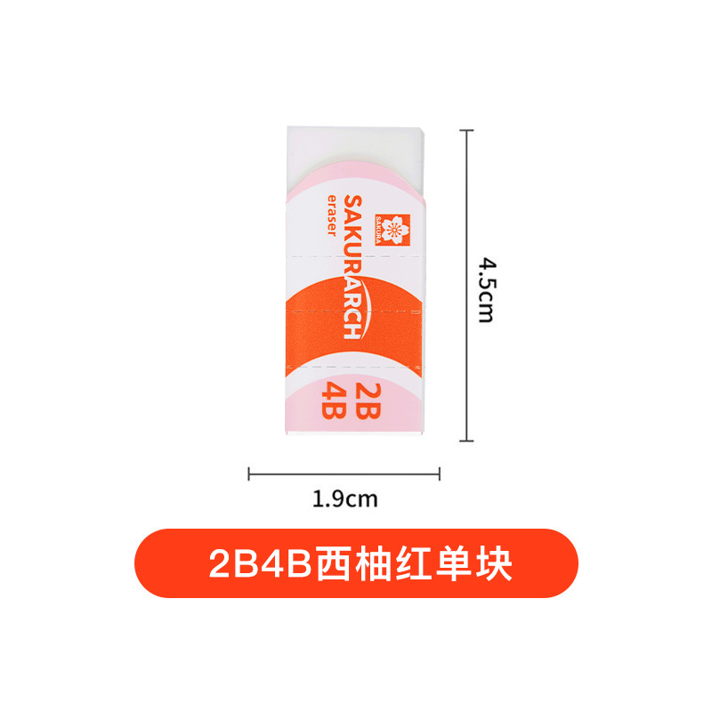 - 樱花XRAJ-60CC学生2B4B橡皮-西柚红 1块(40块/盒)