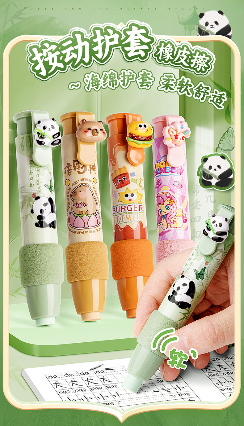 咔巴熊学生按动橡皮擦新升级海绵护套可爱卡通高颜值不留印擦得净