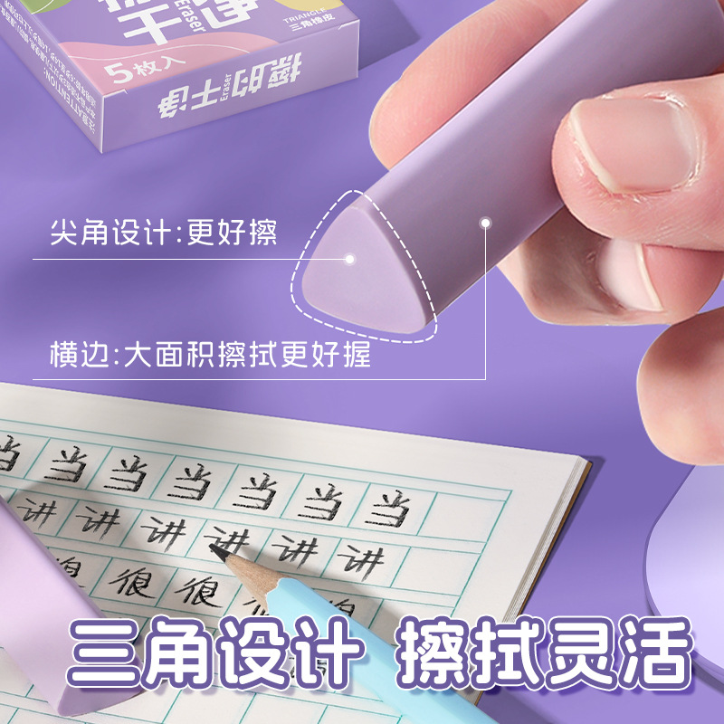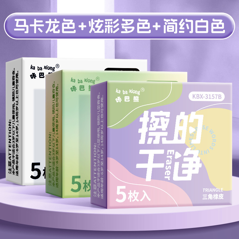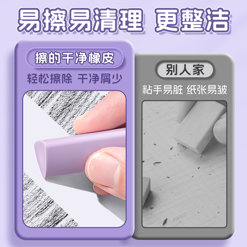 咔巴熊三角可擦橡皮幼升小学生专用橡皮素描无屑绘画橡皮美术用品