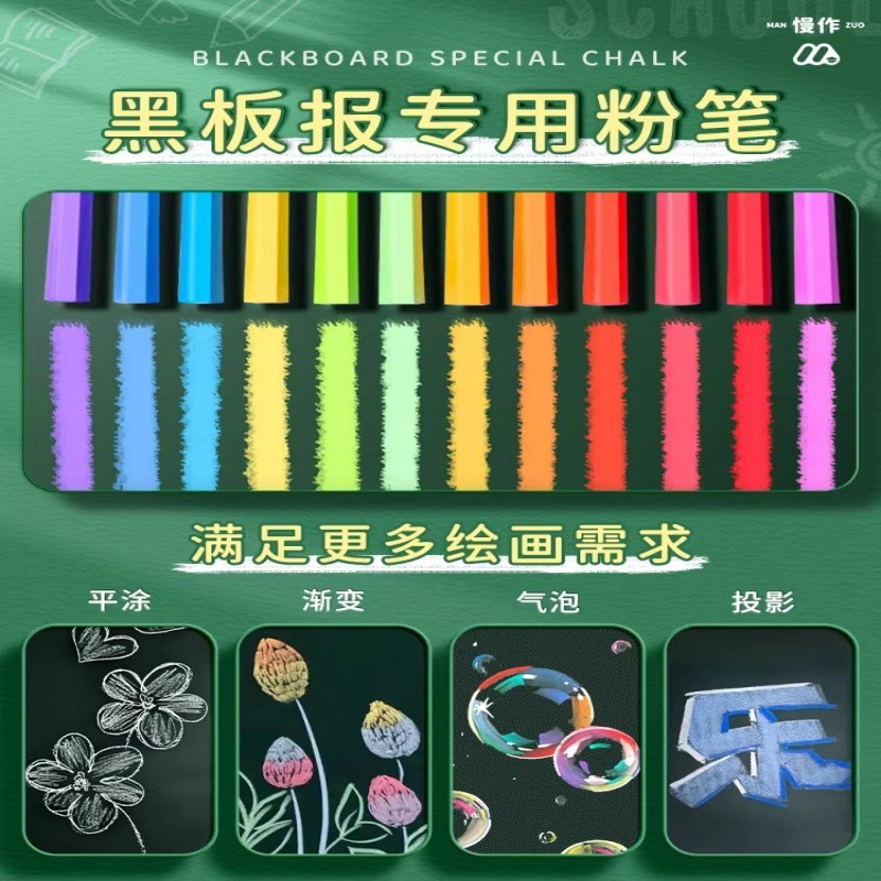 黑板报教师专用彩色粉笔不扬尘安全黑板板报颜料无尘可擦写