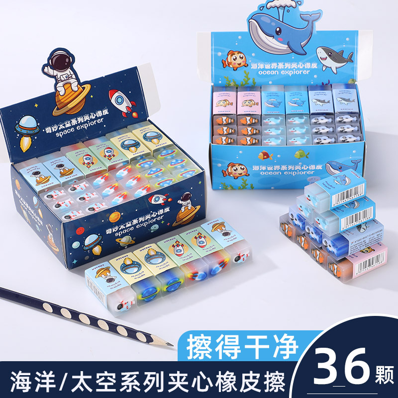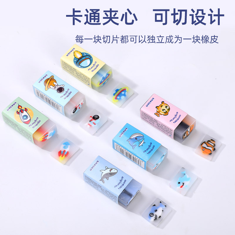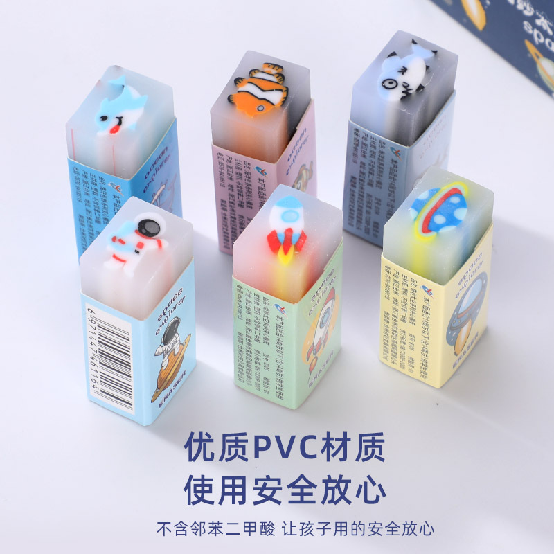 卡通火箭橡皮擦学生文具宇航员飞船动物铅笔擦海豚夹心不掉渣易净