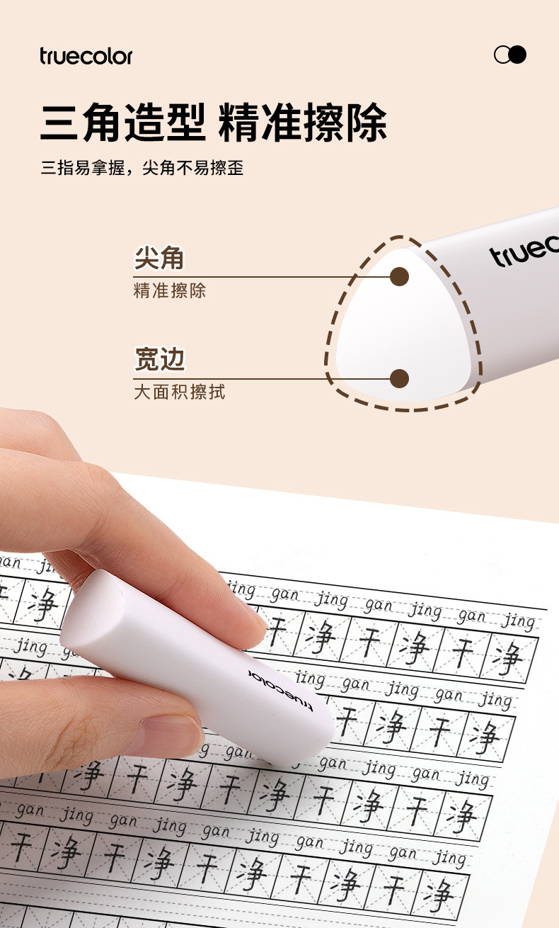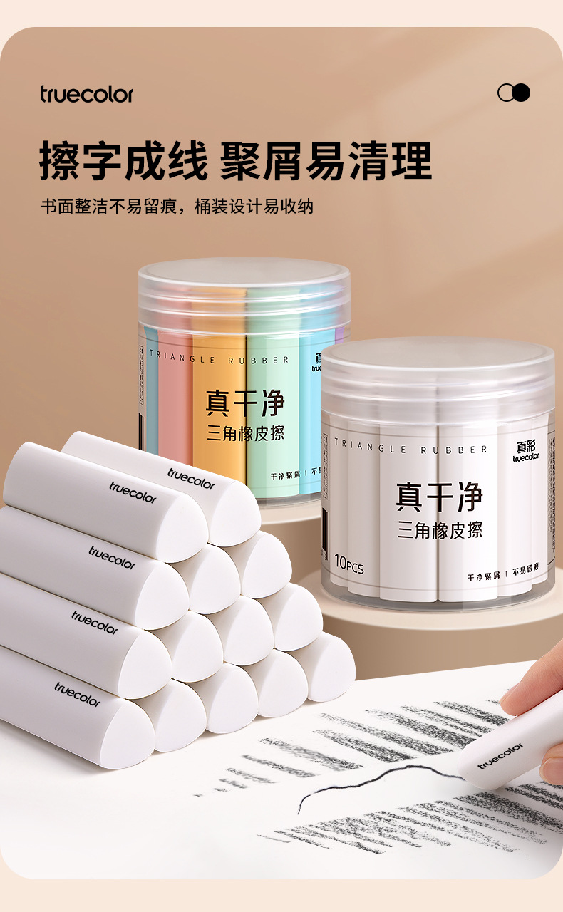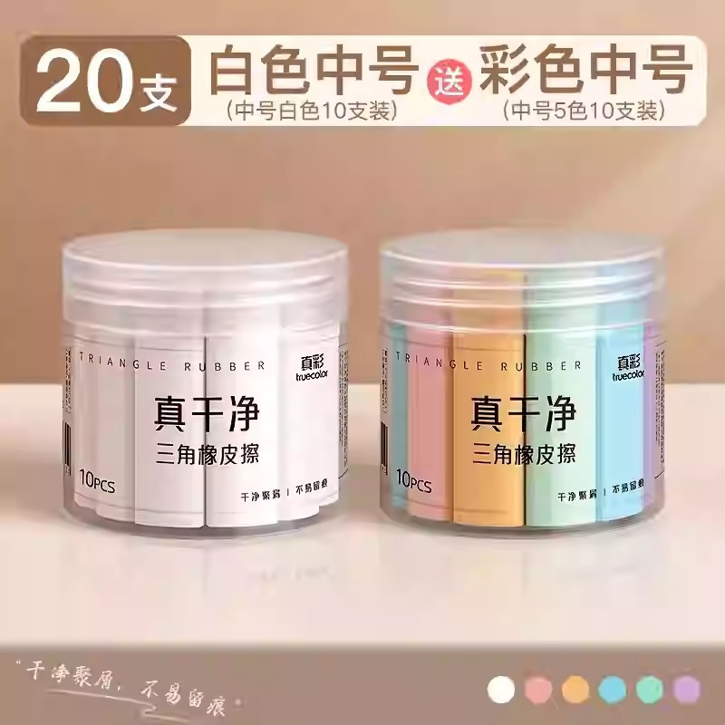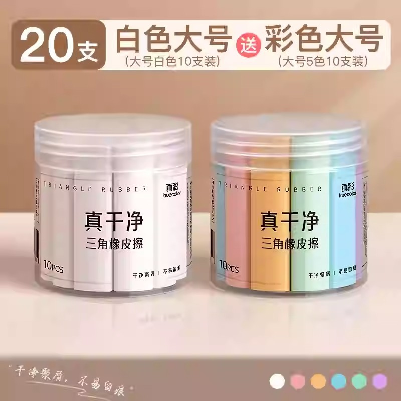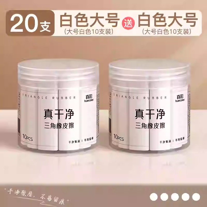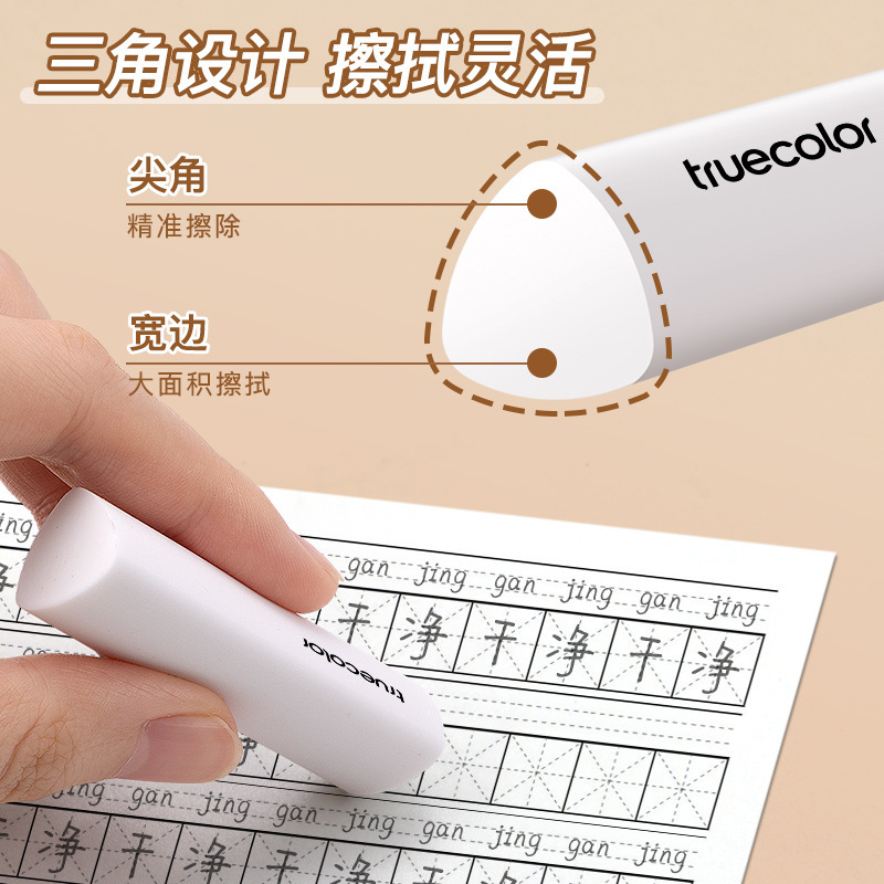真彩三角橡皮擦 小学生专用超净不留痕迹擦字成线2B少屑考试橡皮