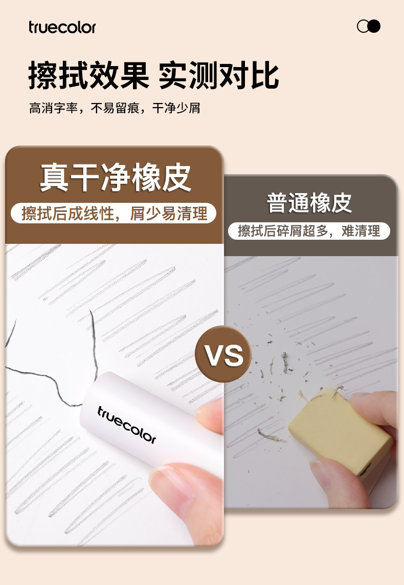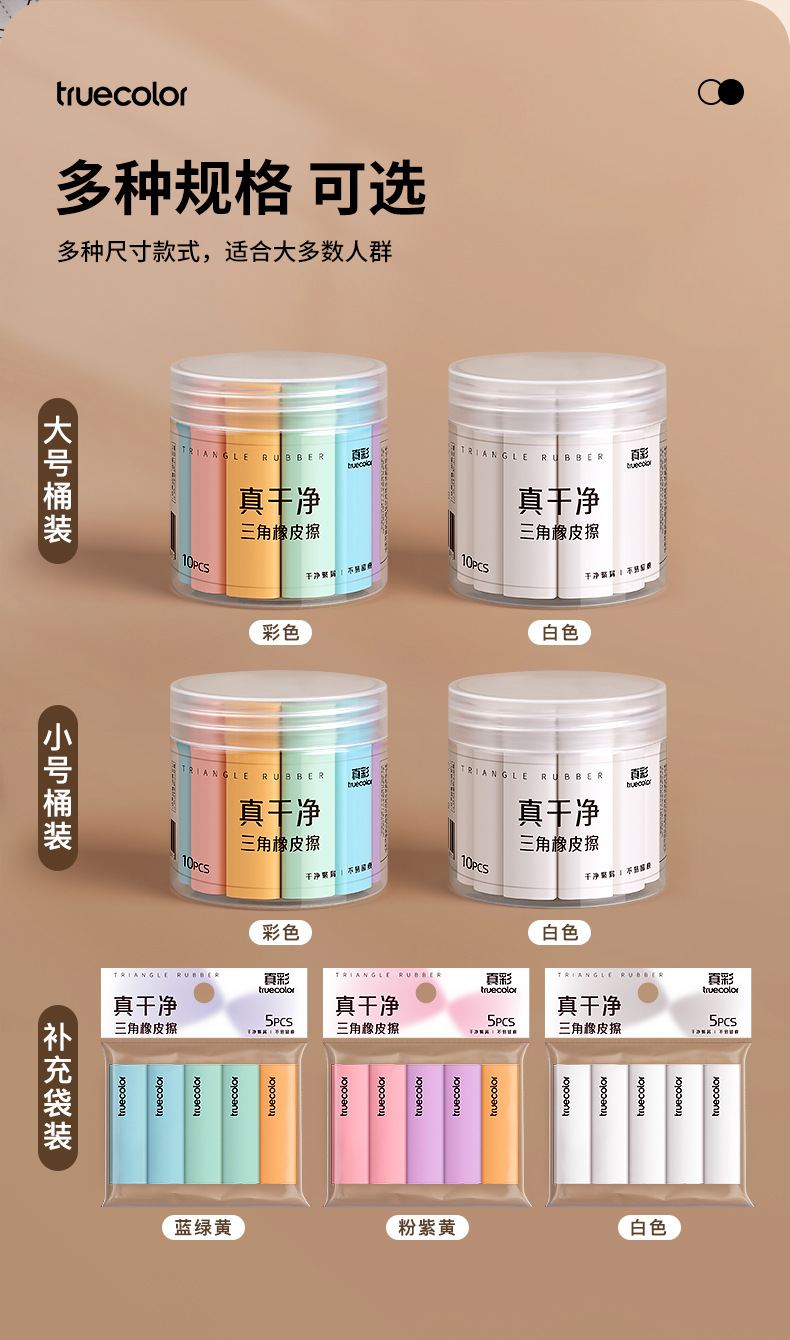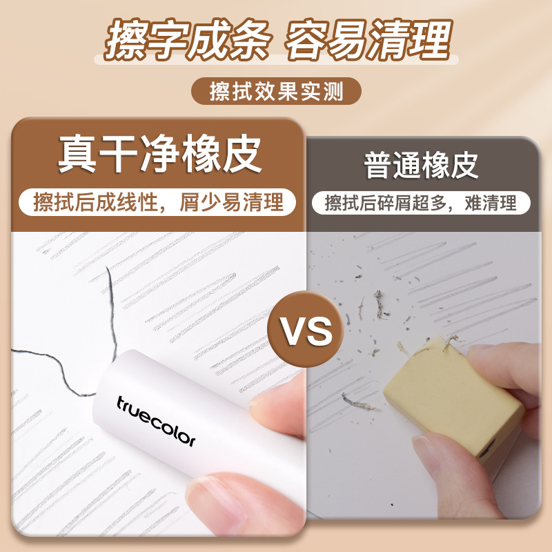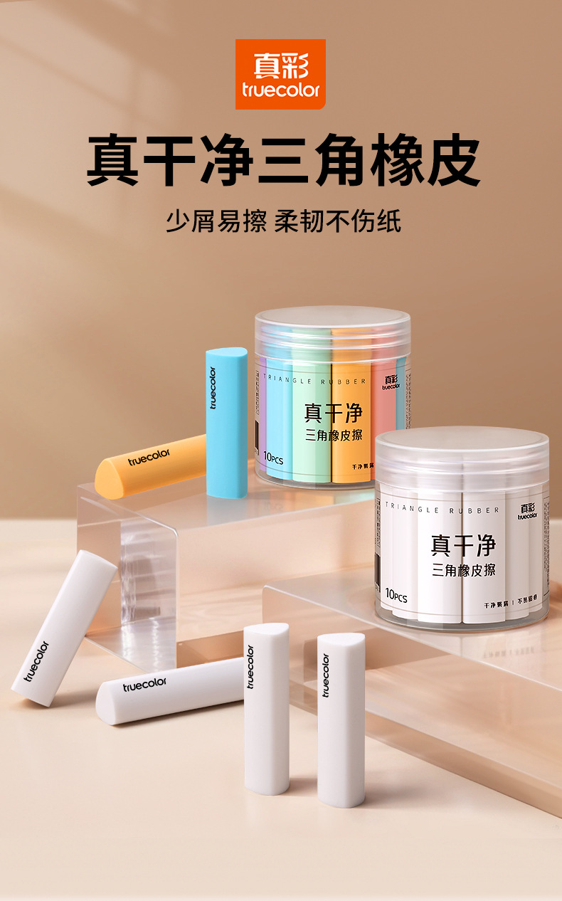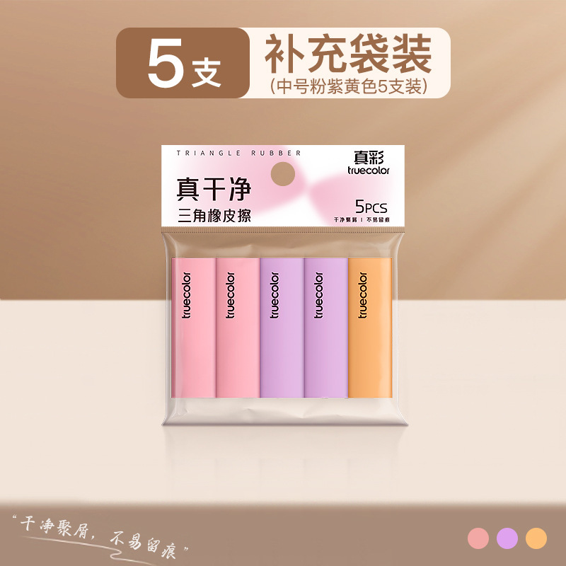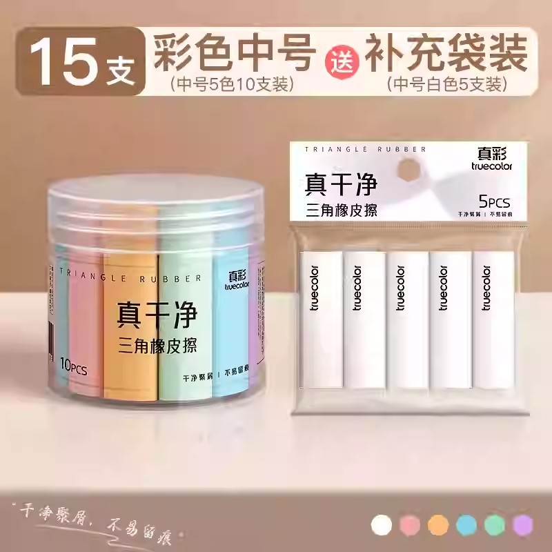 真彩三角橡皮擦 小学生专用超净不留痕迹擦字成线2B少屑考试橡皮
