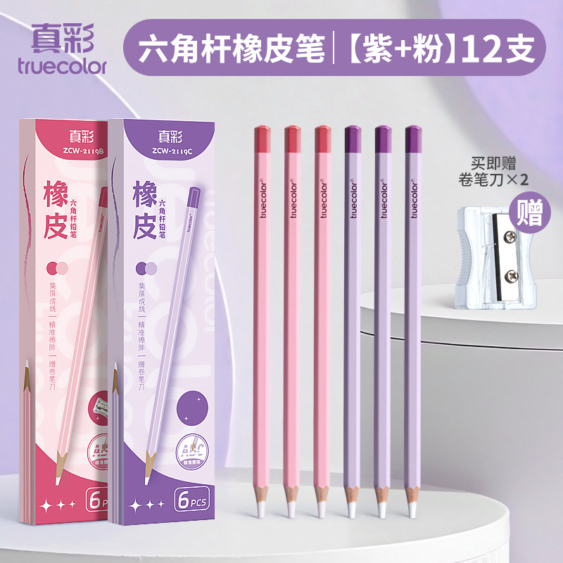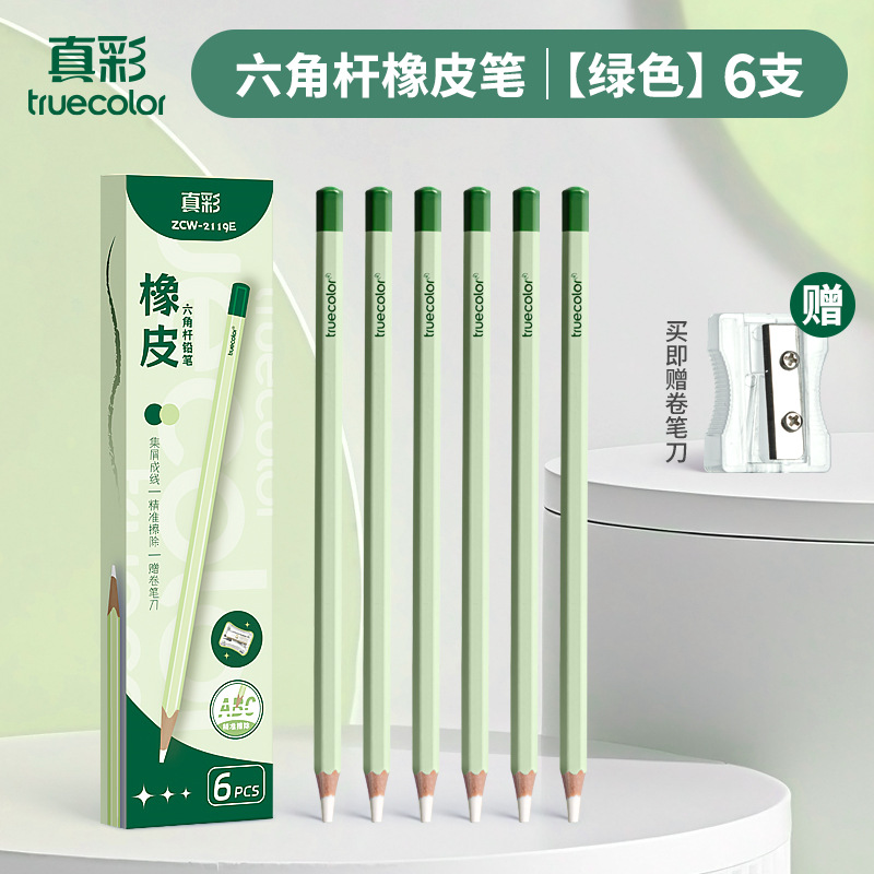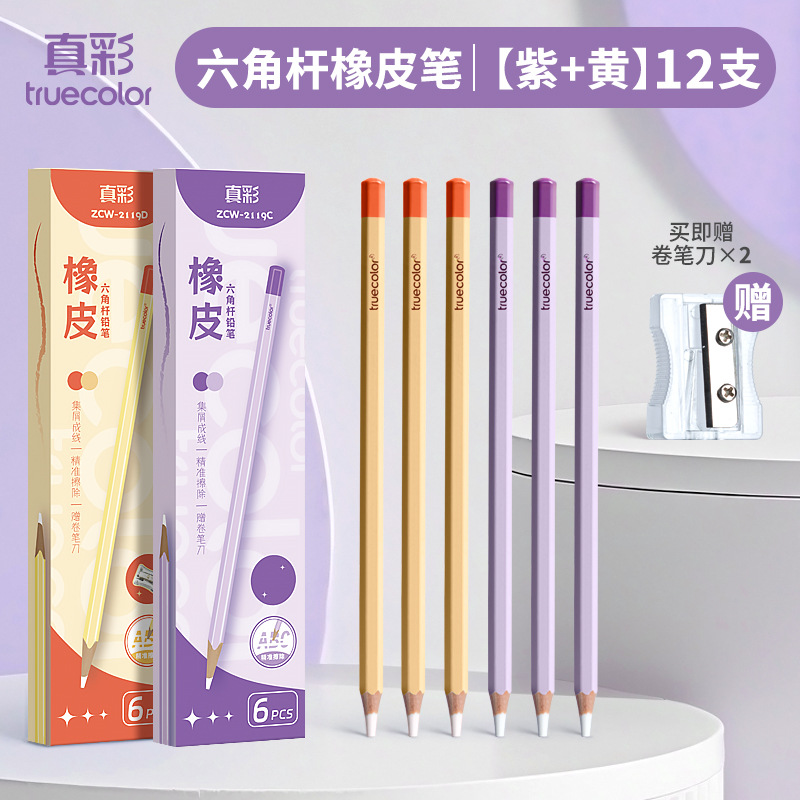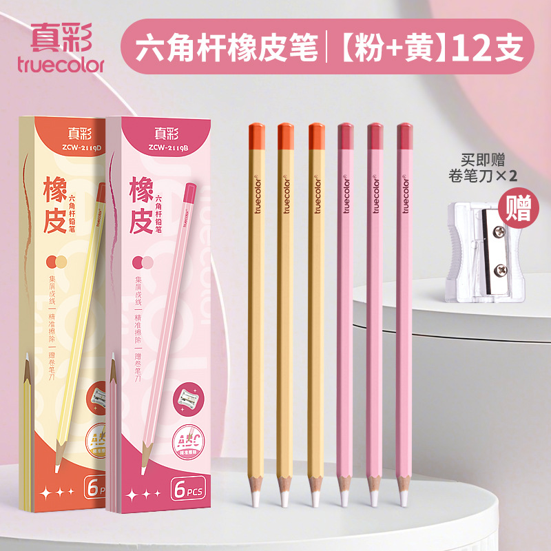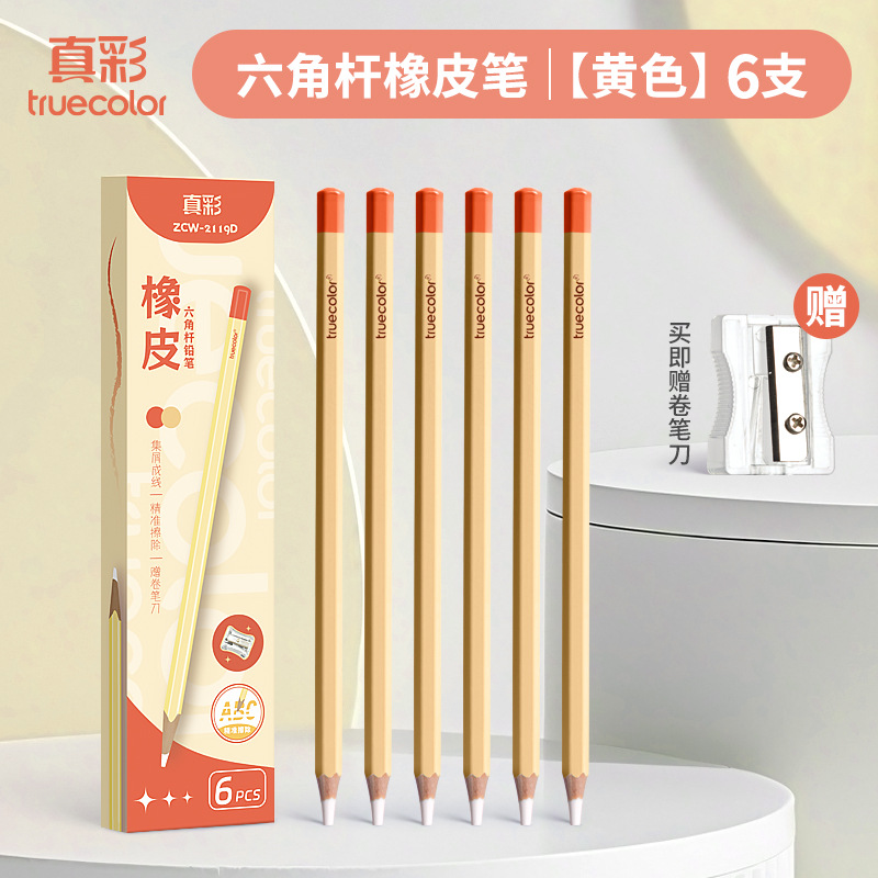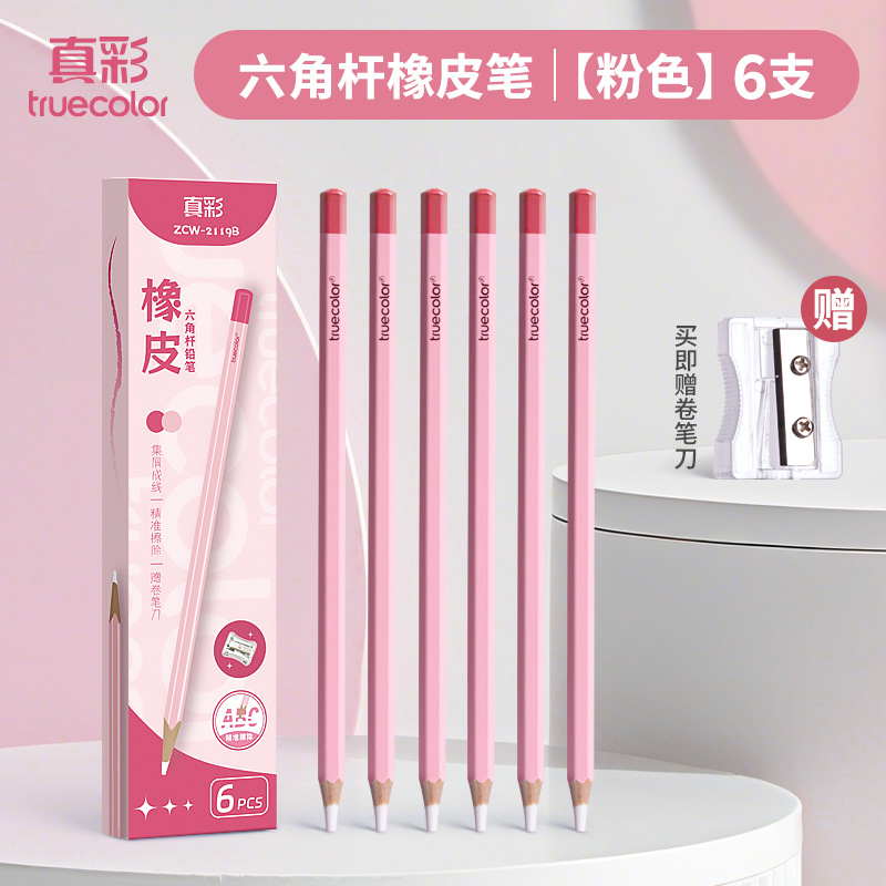 真彩铅笔橡皮擦学生精准点擦无屑干净橡皮笔儿童美术素描