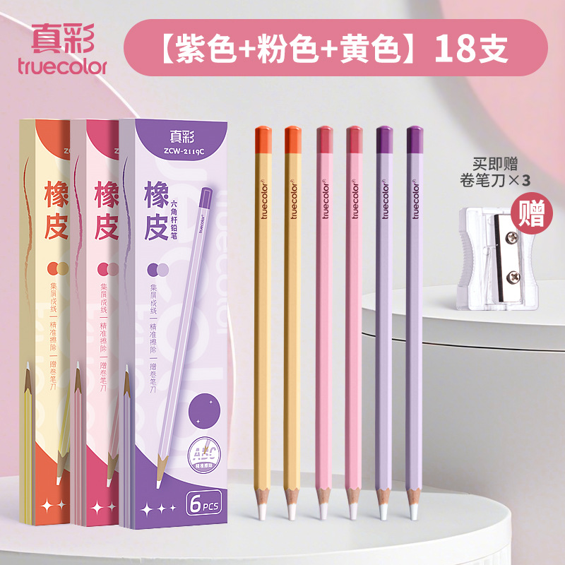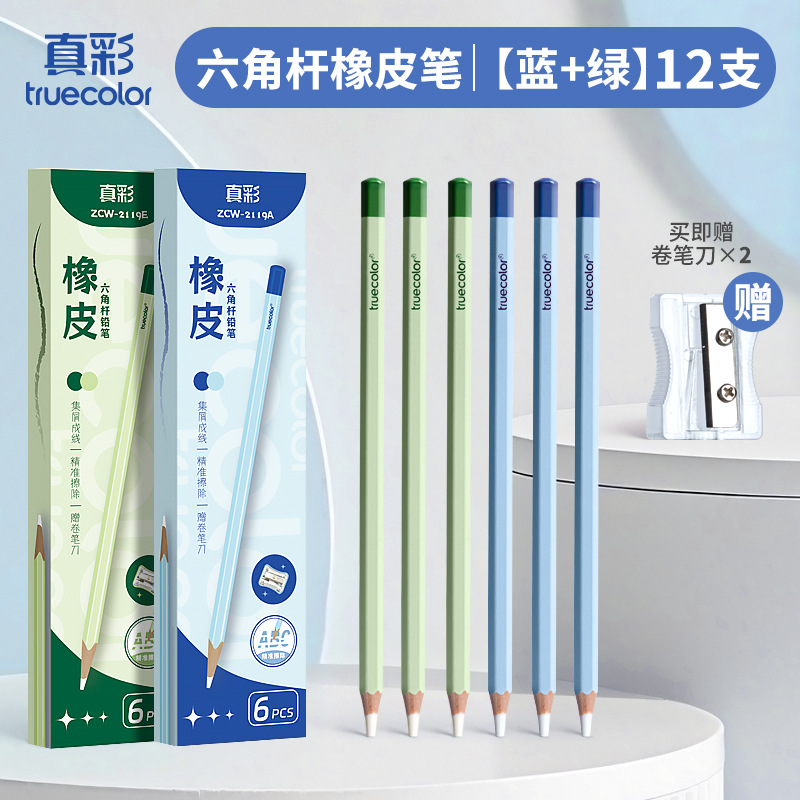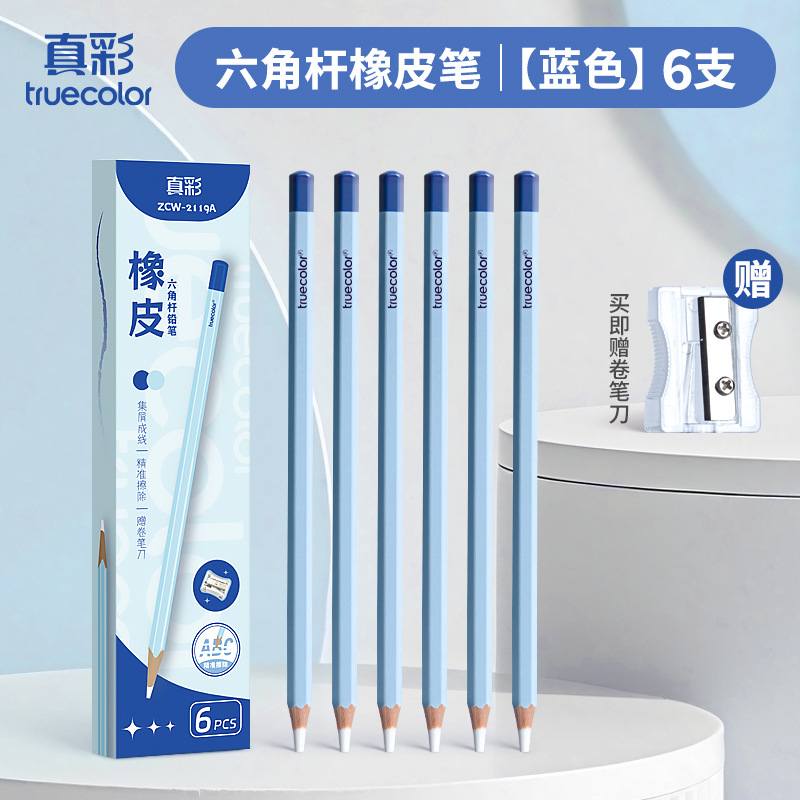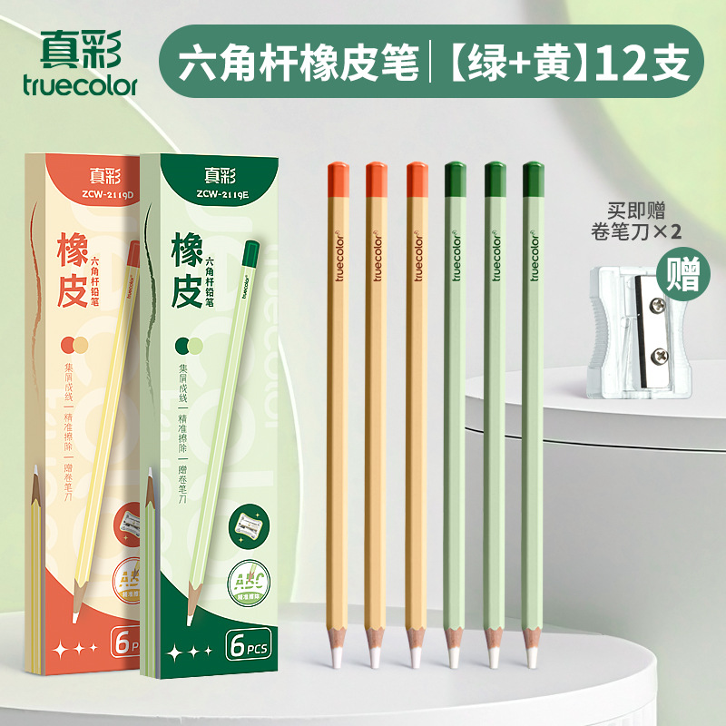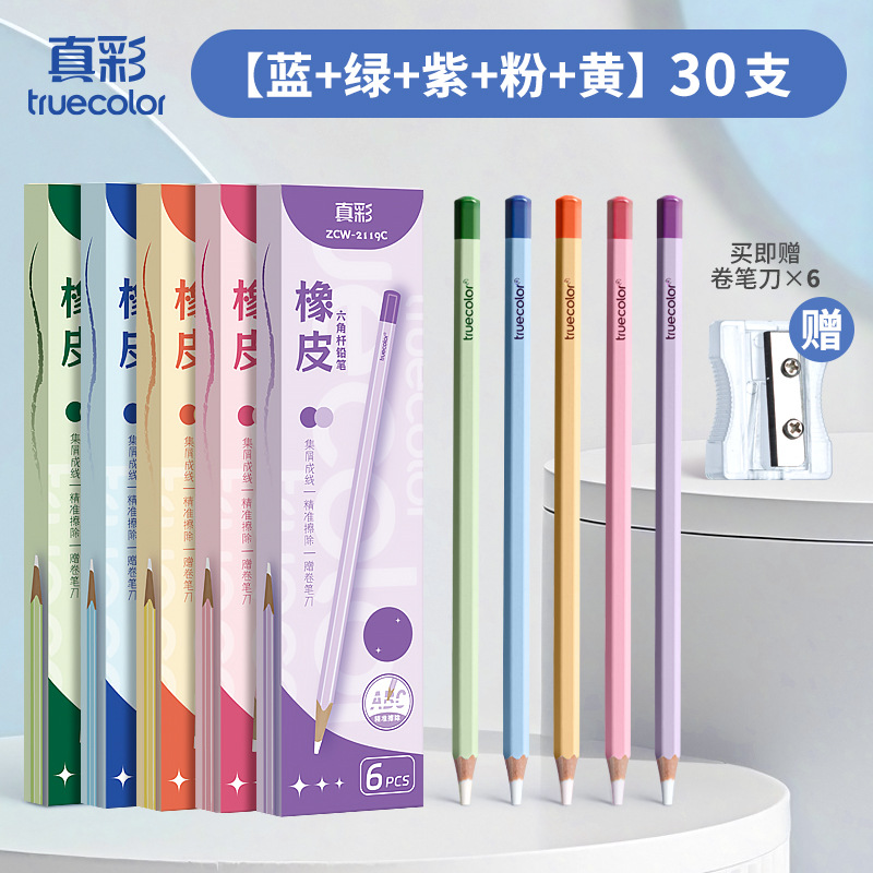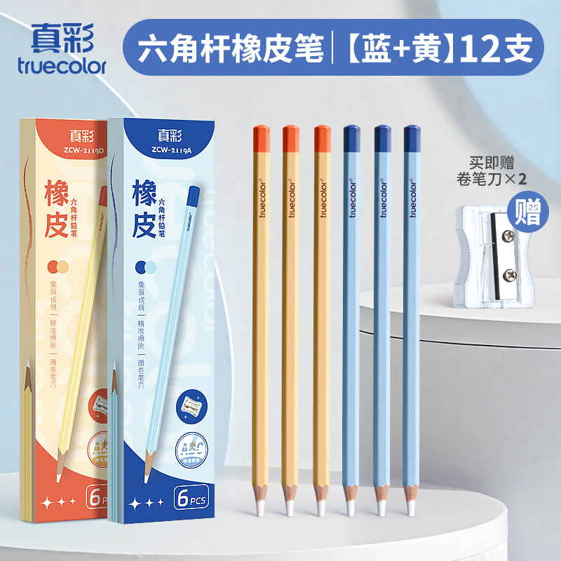 真彩铅笔橡皮擦学生精准点擦无屑干净橡皮笔儿童美术素描