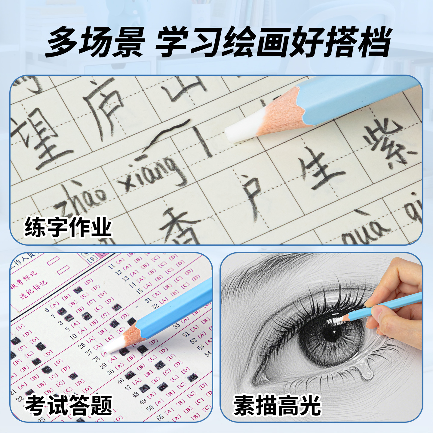 咔巴熊六角铅笔橡皮擦糖果色细节擦不易断裂不留痕学生考试橡皮擦