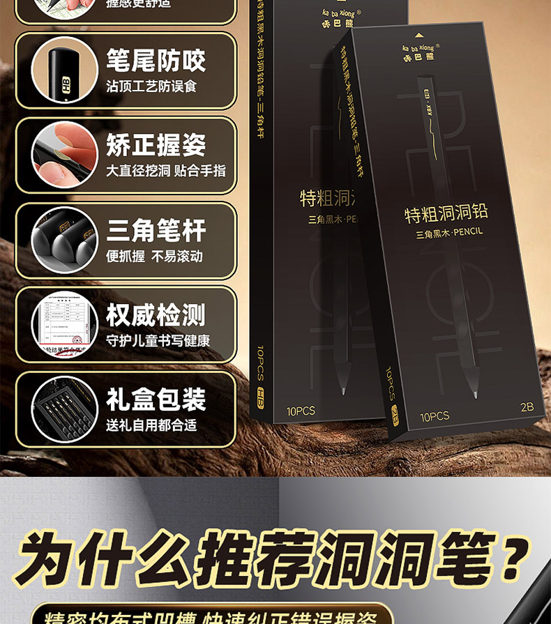特粗黑木洞洞铅笔-三角杆2B(10支装)