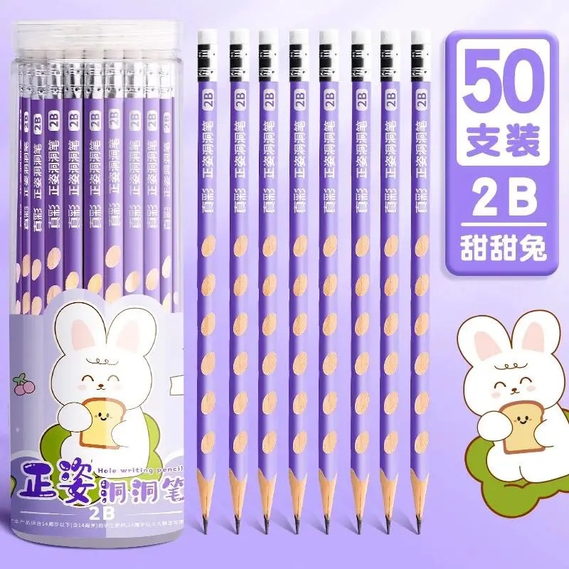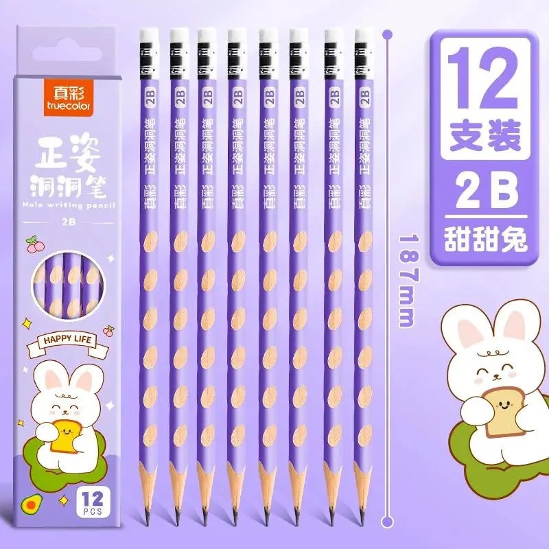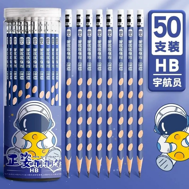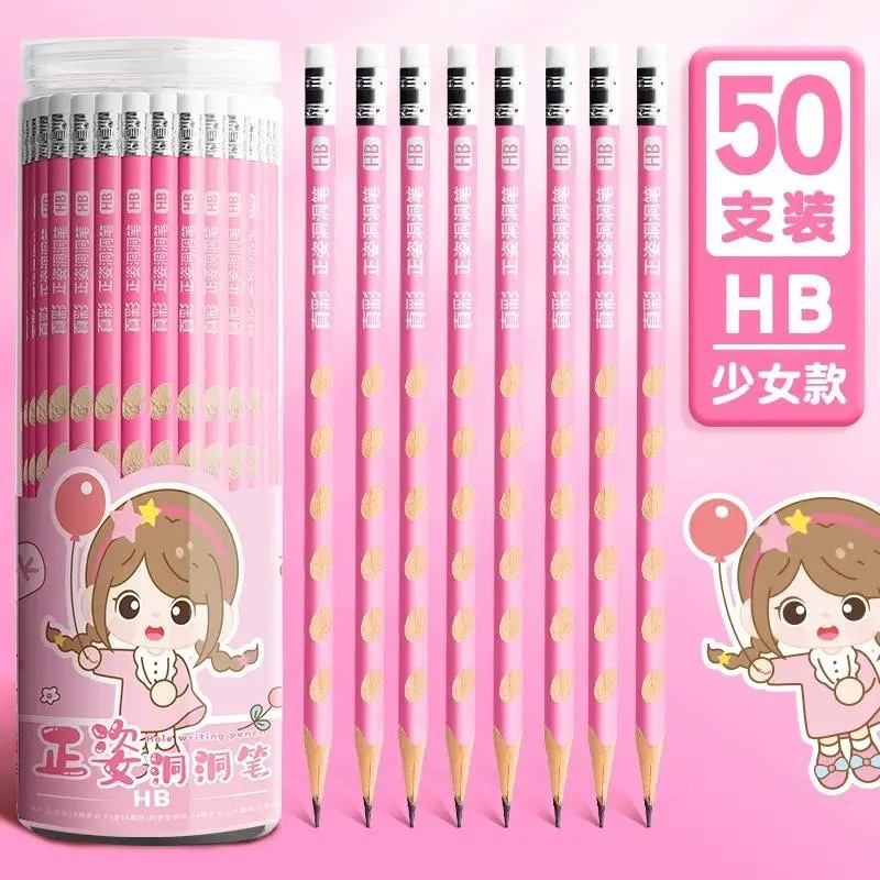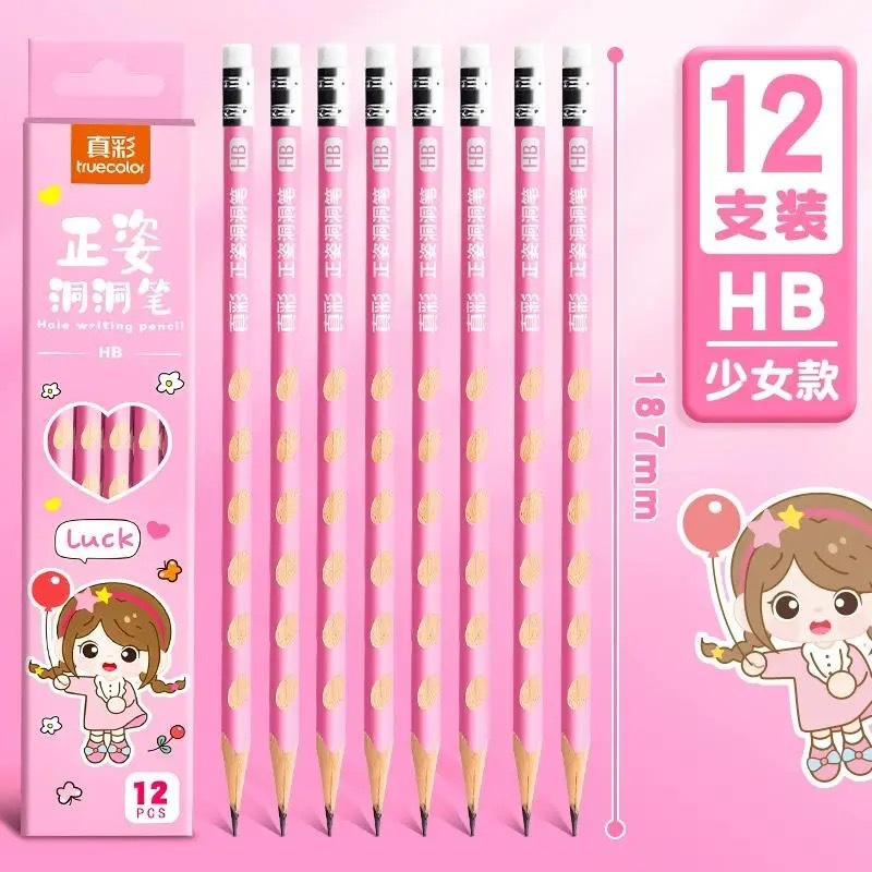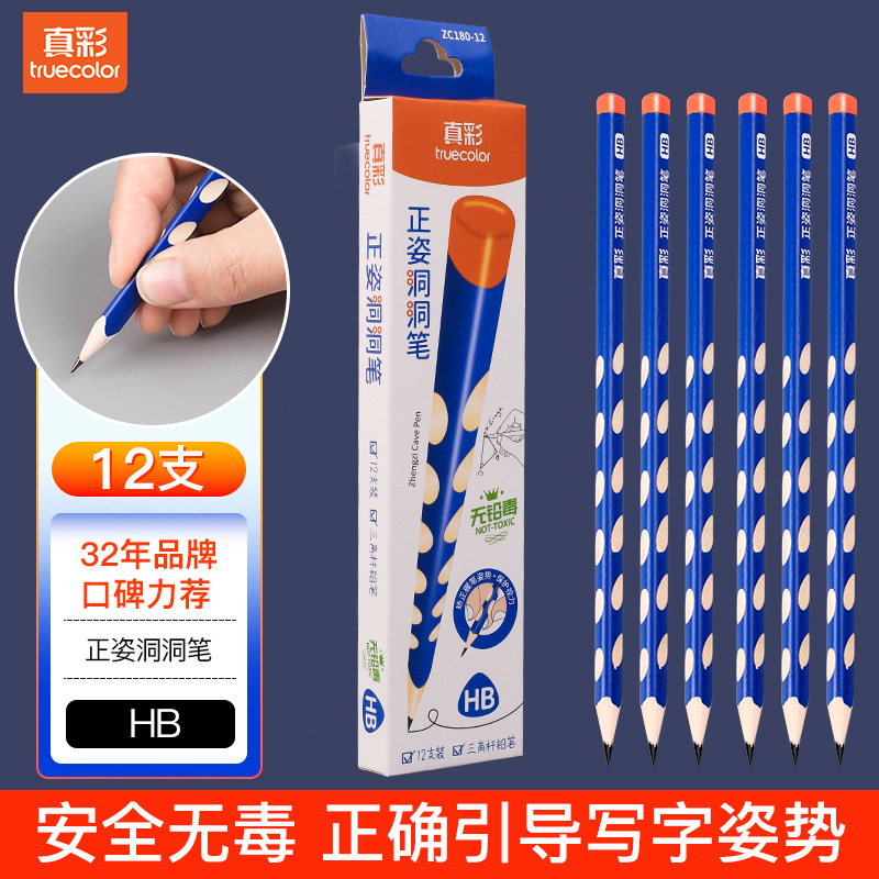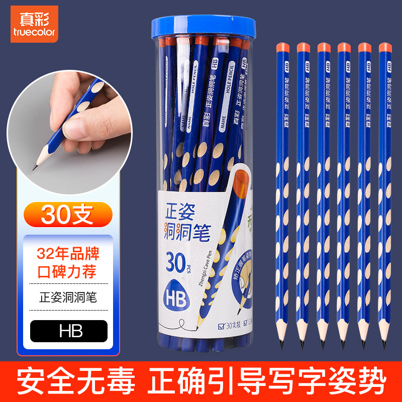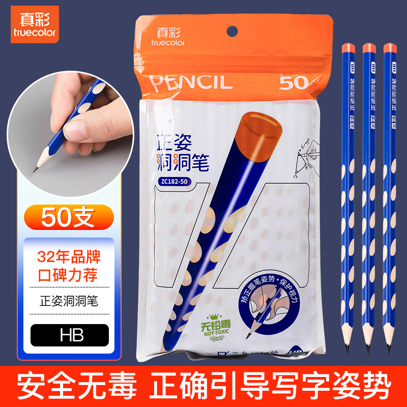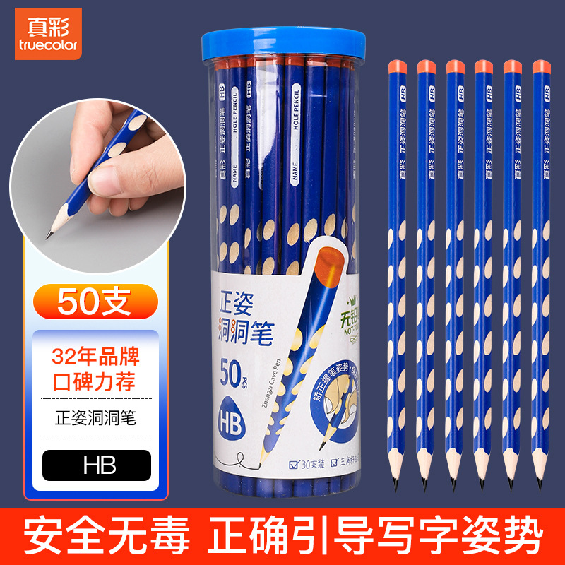 真彩HB洞洞铅笔50支小学生儿童正姿矫姿幼儿园练字笔三角安全无毒