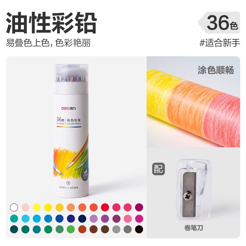 得力彩铅48色36色铅笔水溶性油性专业手绘绘画彩色铅笔套装