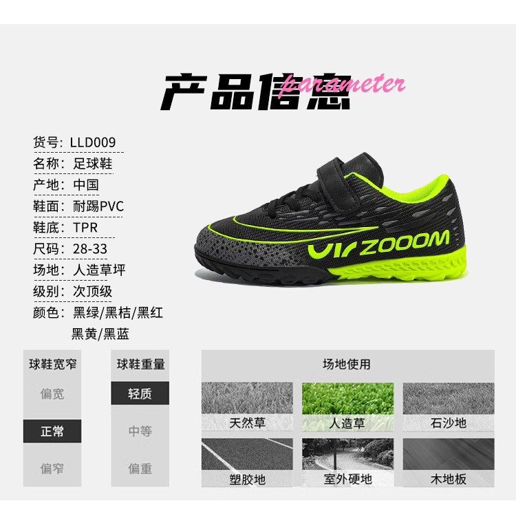 儿童足球鞋室内运动训练鞋透气学生碎钉LLD009透气技术